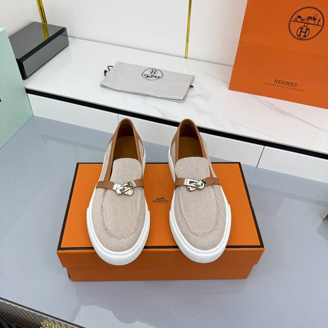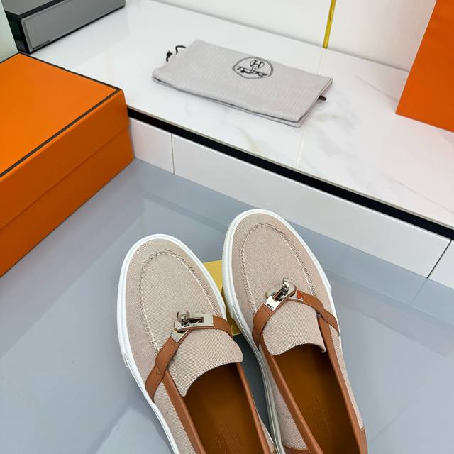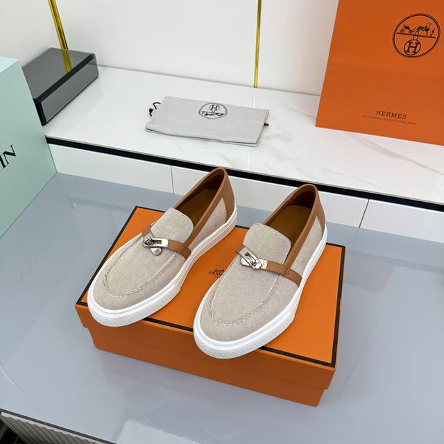 女码 ,男码420 情侣款 Hermes 爱马仕 25Ss新款Loop Sneaker情侣款皮革休闲运动鞋原版购入代购级别材质与工艺采用原版进口小牛皮 麂皮 降