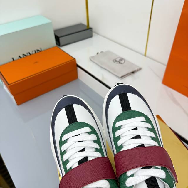 女码 ,男码430 情侣款 Hermes 爱马仕 25Ss新款Loop Sneaker情侣款皮革休闲运动鞋原版购入代购级别材质与工艺采用原版进口小牛皮 麂皮 降