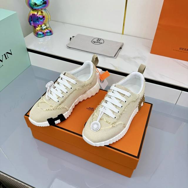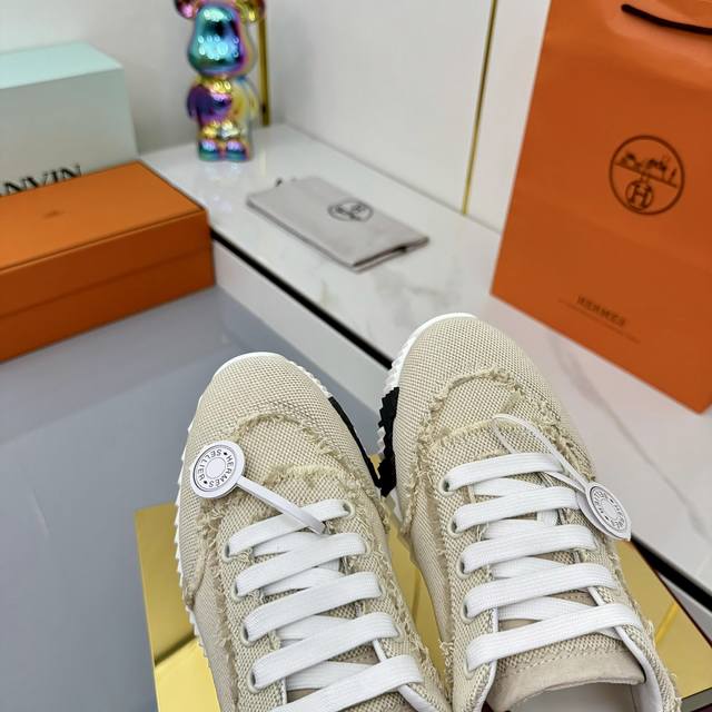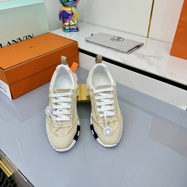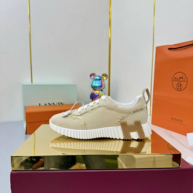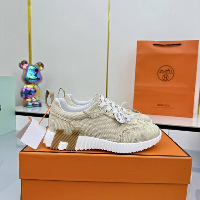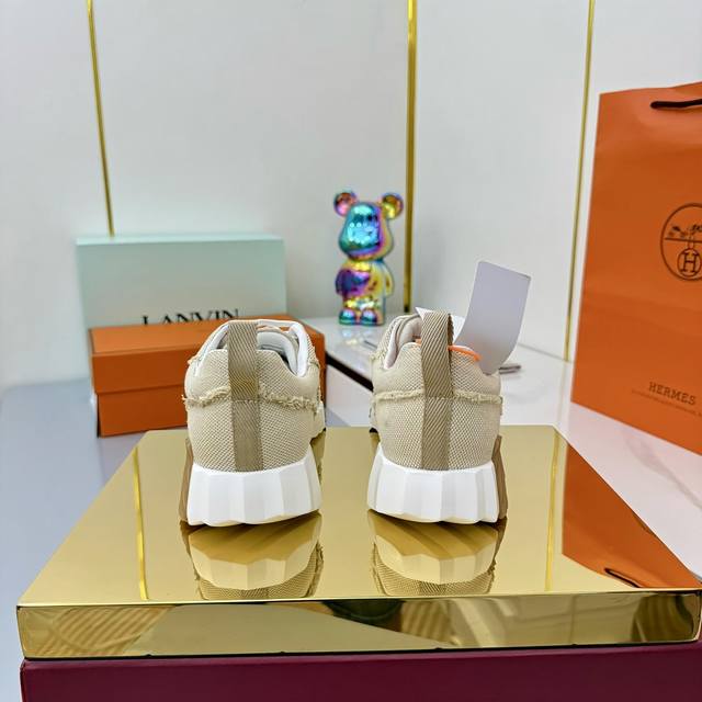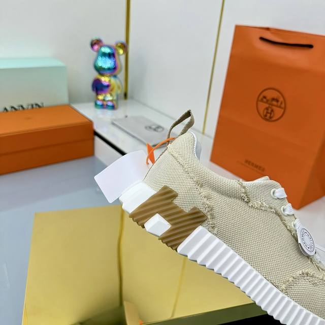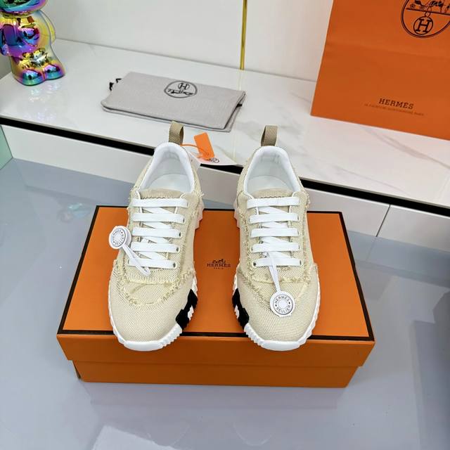 / 女 男+10 Hermes 顶级版本# 爱马仕H家经典情侣款 休闲运动鞋 情侣款休闲之履运动老爹鞋结合高科技帆布与麂皮山羊皮,在橡胶鞋底上饰以夸张“H”字母,斜