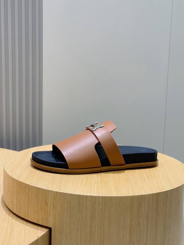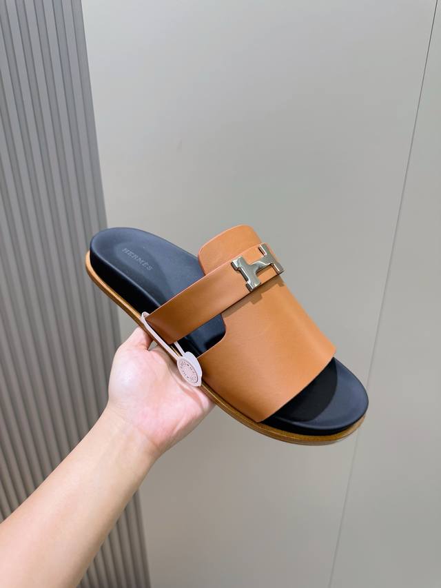 工厂p价p: Ddd 爱马仕 H新品男拖鞋-顶级真皮大底 凉鞋 Ddd H金属扣饰,款式经典传久,经得起考验。 Ddd 进口小牛皮鞋面+牛皮内里+意大利真皮大底 Ddd Size:39-44 39.45,46定做 DDD Ddd