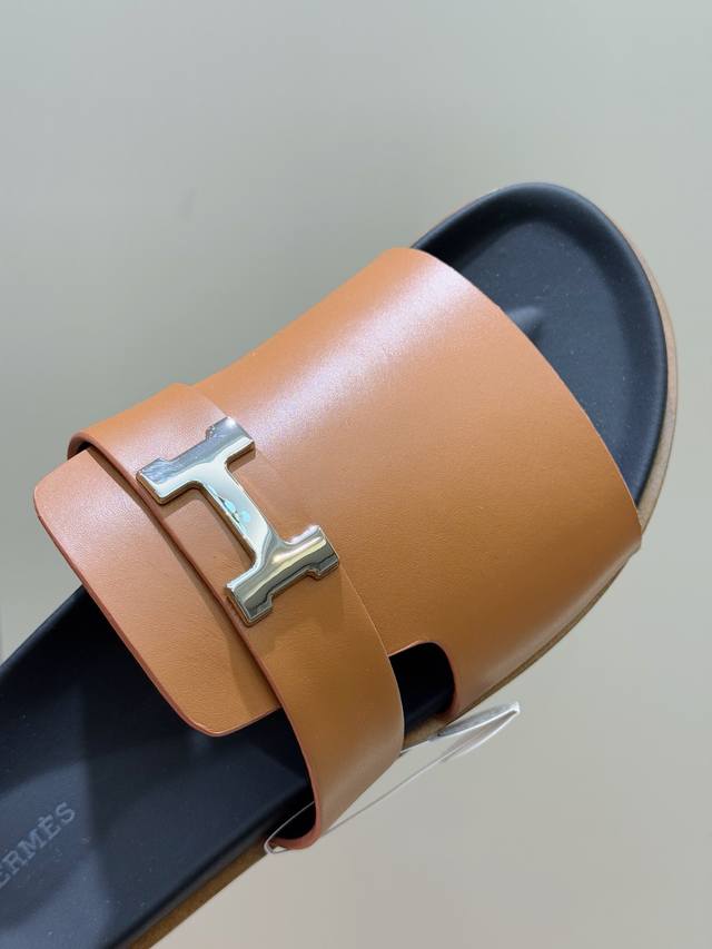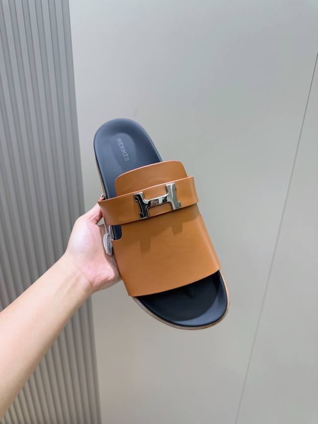 工厂p价p: 爱马仕 H新品男拖鞋-顶级真皮大底 凉鞋 H金属扣饰,款式经典传久,经得起考验。 进口小牛皮鞋面+牛皮内里+意大利真皮大底 Size:39-44