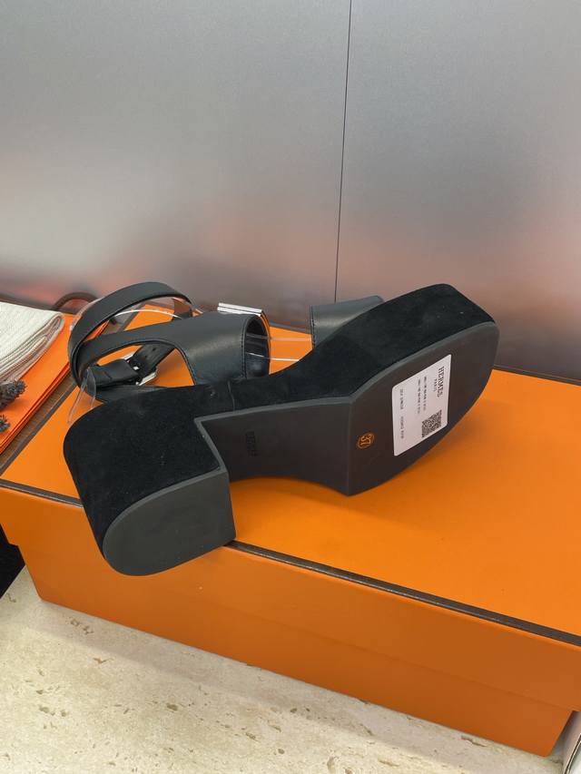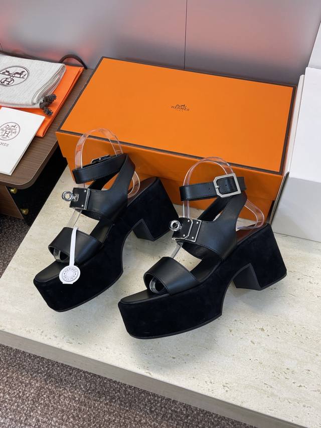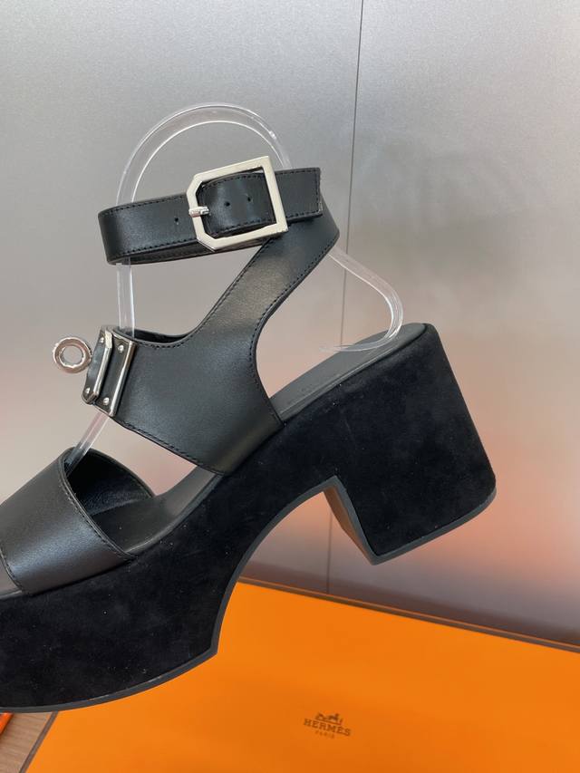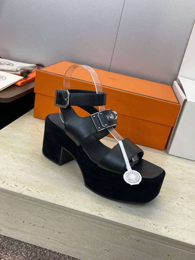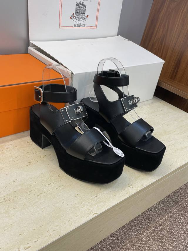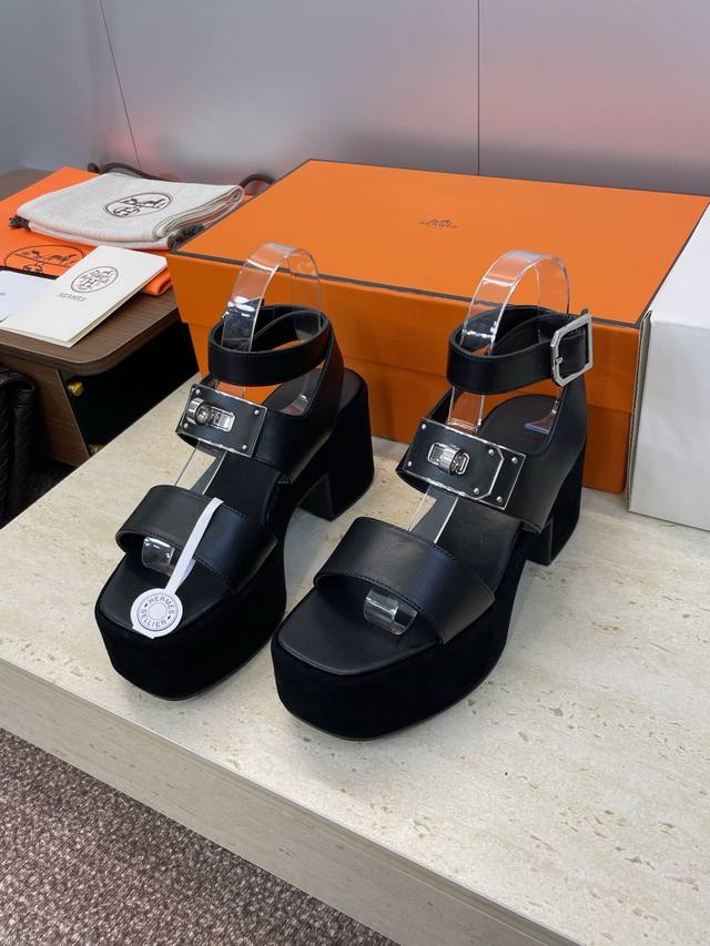 工厂P价P 莞产 代购级 爱马仕 Hermes 2025春夏新款 Kelly扣 Lola拼色粗跟女鞋 H家高跟厚底防水台圆头罗马风交叉带凉拖鞋 材质:鞋面进口小牛皮 进口羊猄皮+水染牛皮内里+原版开模大底 跟高:7.5Cm 防水台:3.5Cm Size: 34-43 34.40.41.42.43定制不退换