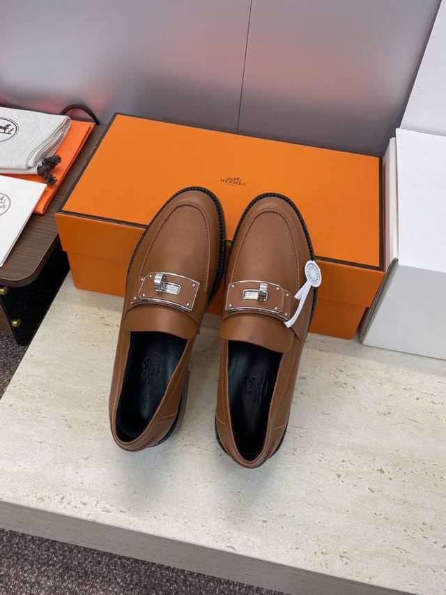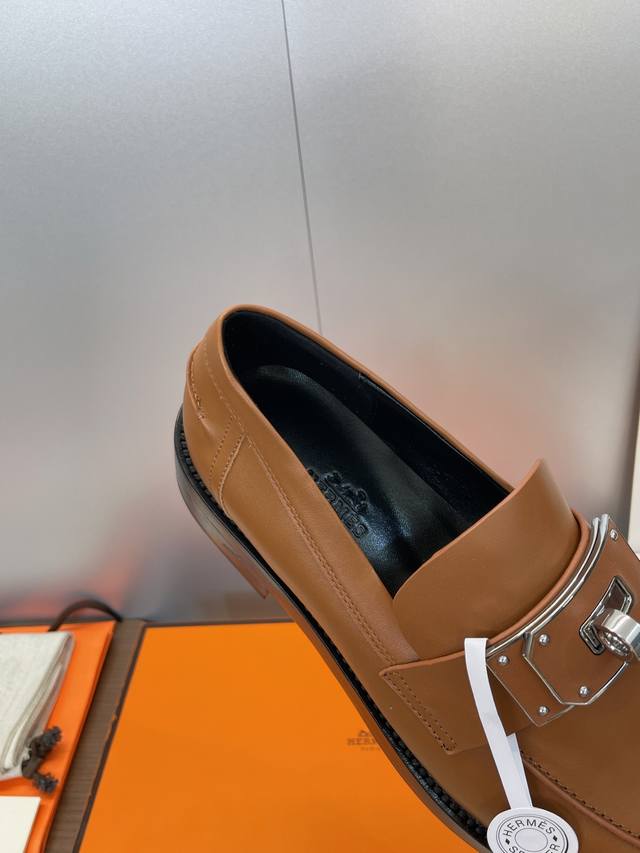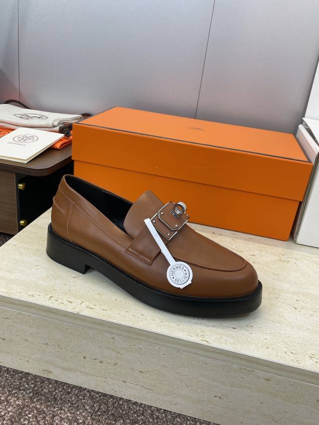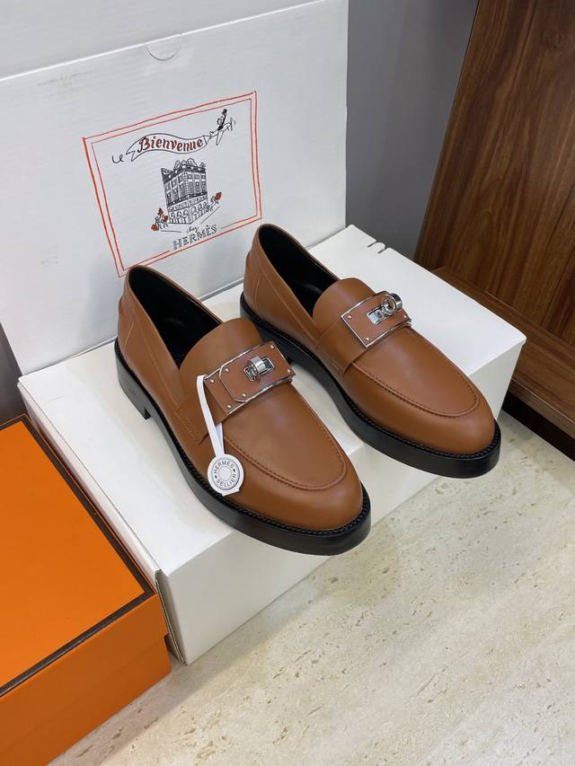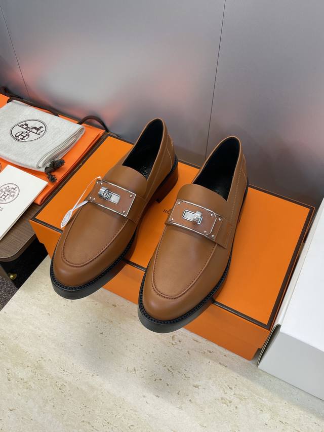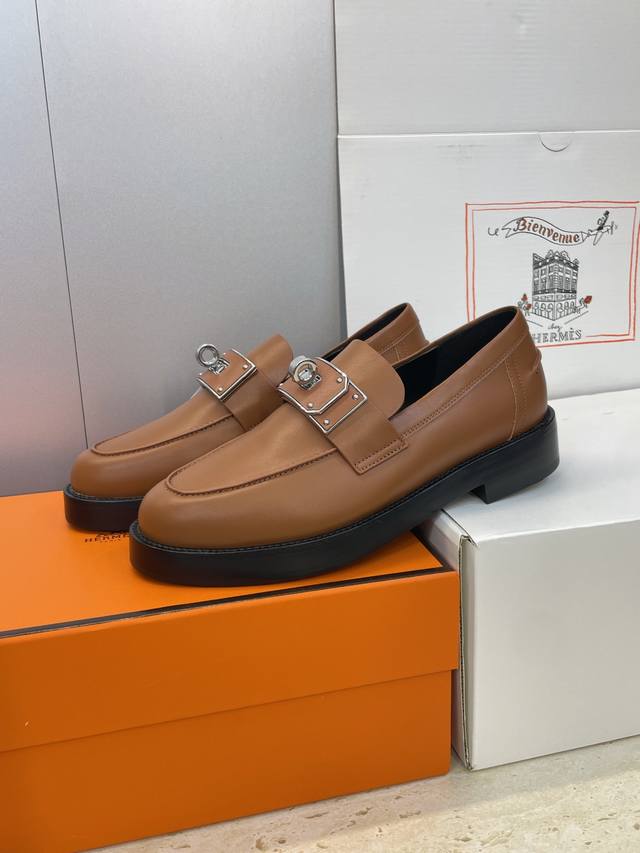 / 工厂P价P 莞货 代购级 爱马仕 Hermes 2025秋冬新款 Kelly扣 Lcone拼色低跟女鞋 H家厚底圆头时尚休闲乐福鞋 材质:鞋面进口小牛皮+水染牛