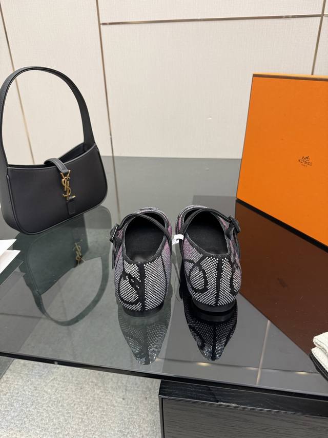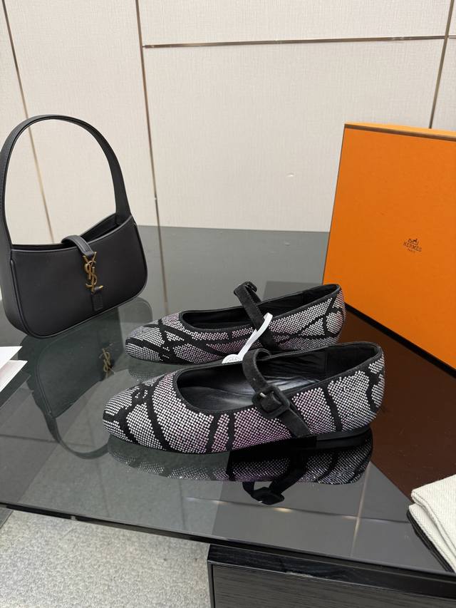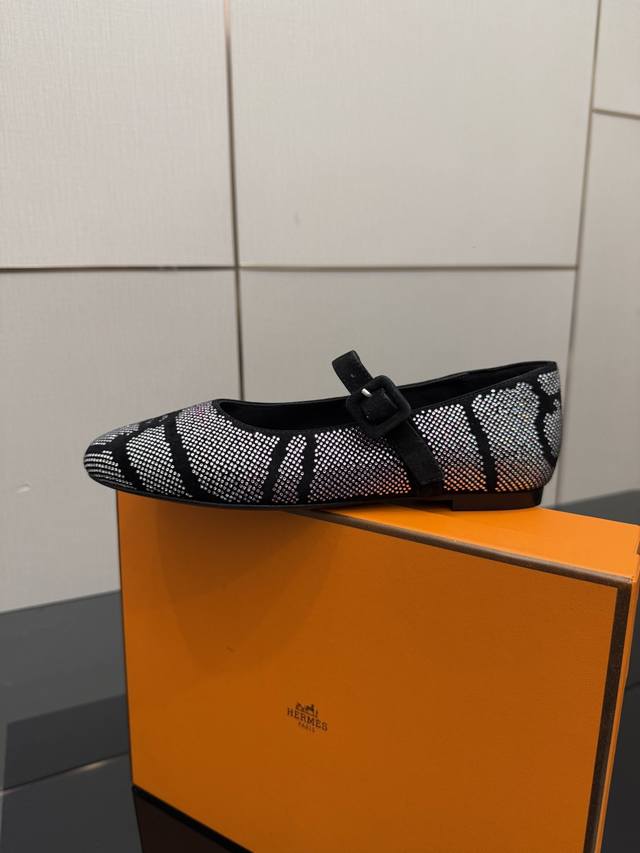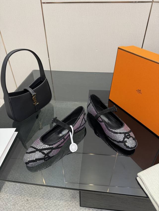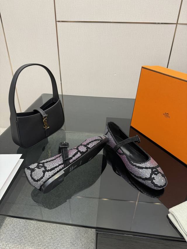 工厂p价p Ddd 莞货 代购级 爱马仕 Hermes 2025秋冬新款Light 水钻拼色芭蕾舞娃娃女鞋 H家字母Logo平底圆头玛丽珍乐福单鞋 Ddd 材质:鞋面进口羊猄皮镶烫澳洲水钻+水染牛皮内里+意大利真皮大底 Ddd Size: 34-43 34.40.41.42.43定制不退换 DDD Ddd
