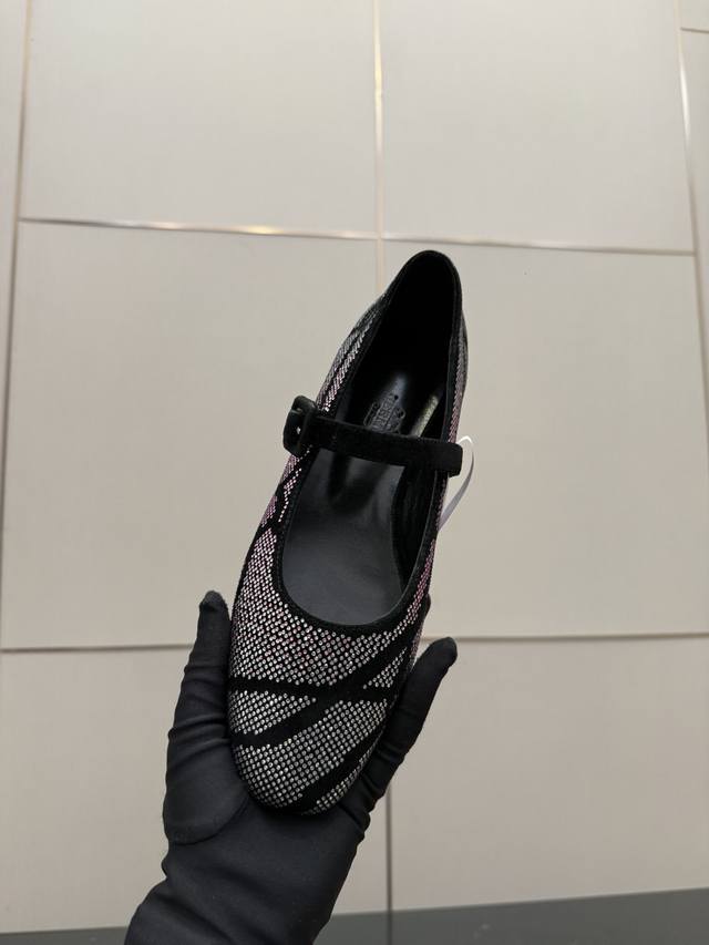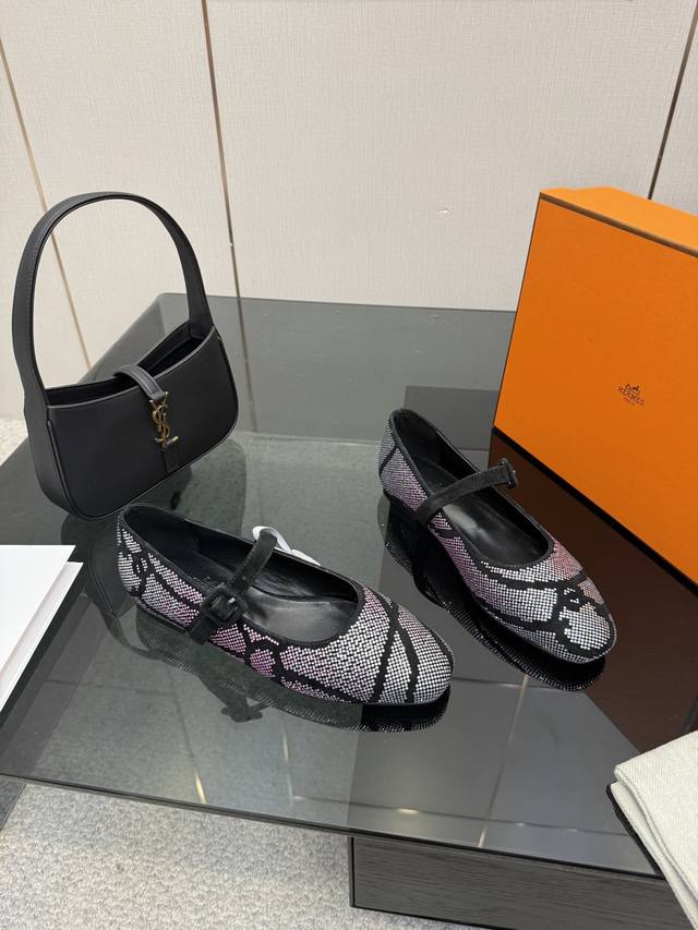 工厂p价p 莞货 代购级 爱马仕 Hermes 2025秋冬新款Light 水钻拼色芭蕾舞娃娃女鞋 H家字母Logo平底圆头玛丽珍乐福单鞋 材质:鞋面进口羊猄皮