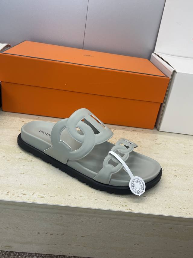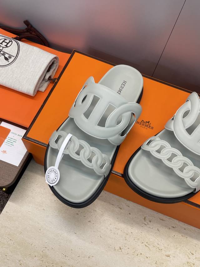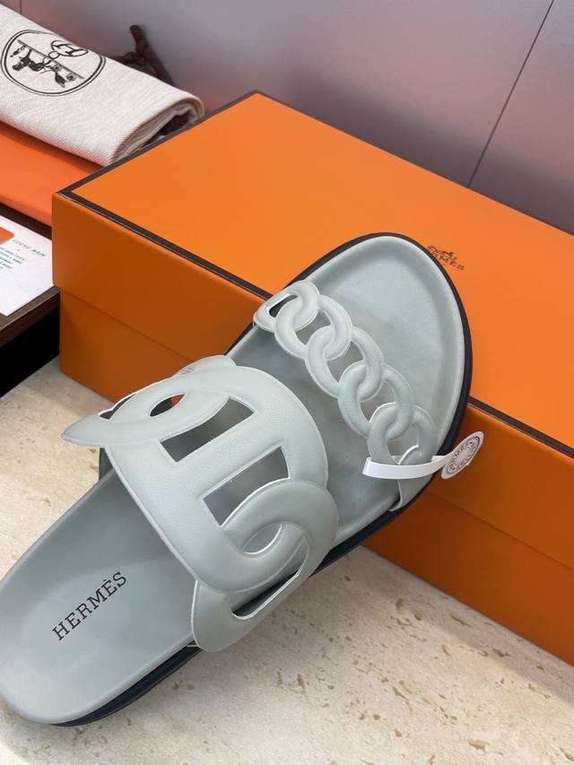 / 工厂p价p 配全套飞机盒 莞货 代购级 Hermers 爱马仕2025春夏新款 Extra度假风拼色懒人沙滩女鞋 H家糖果色平底圆头露趾Chaine D’Anc
