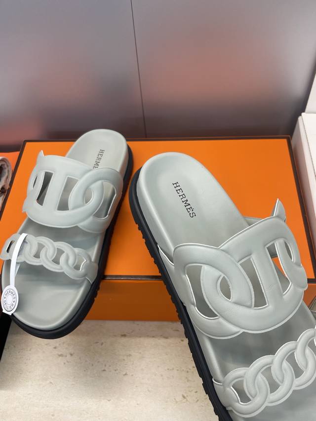 新色,中底全包,全新改版 HermèS 包装升级,版型做工材料升级。 Hermes市场最高版本纯手工鞋 顶级产品爱马仕拖鞋...