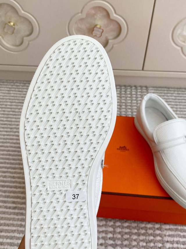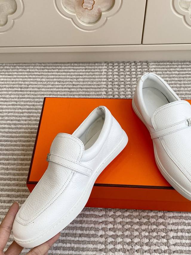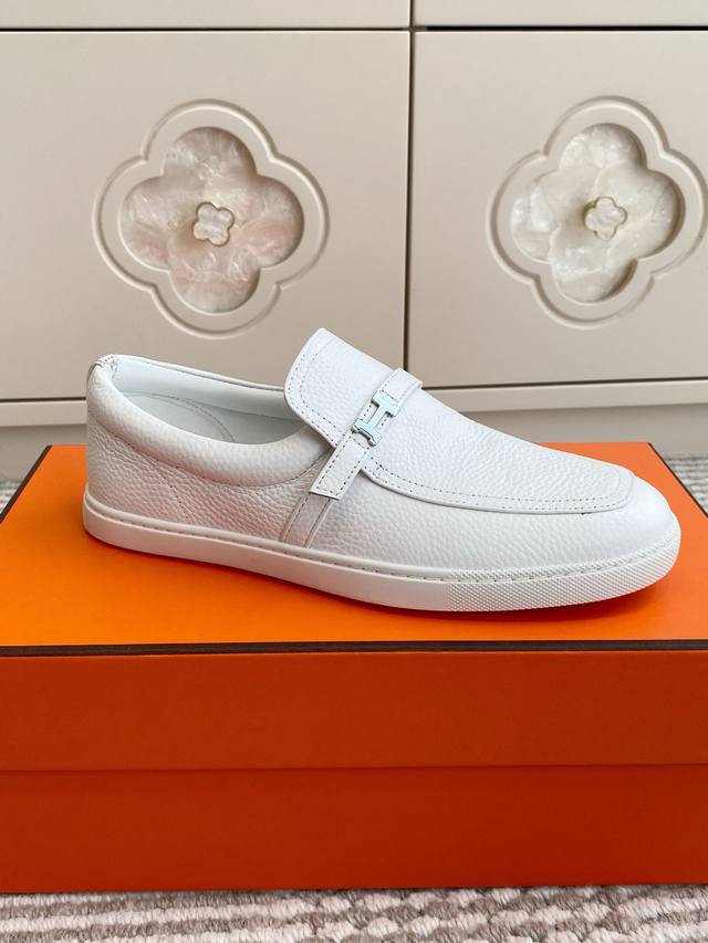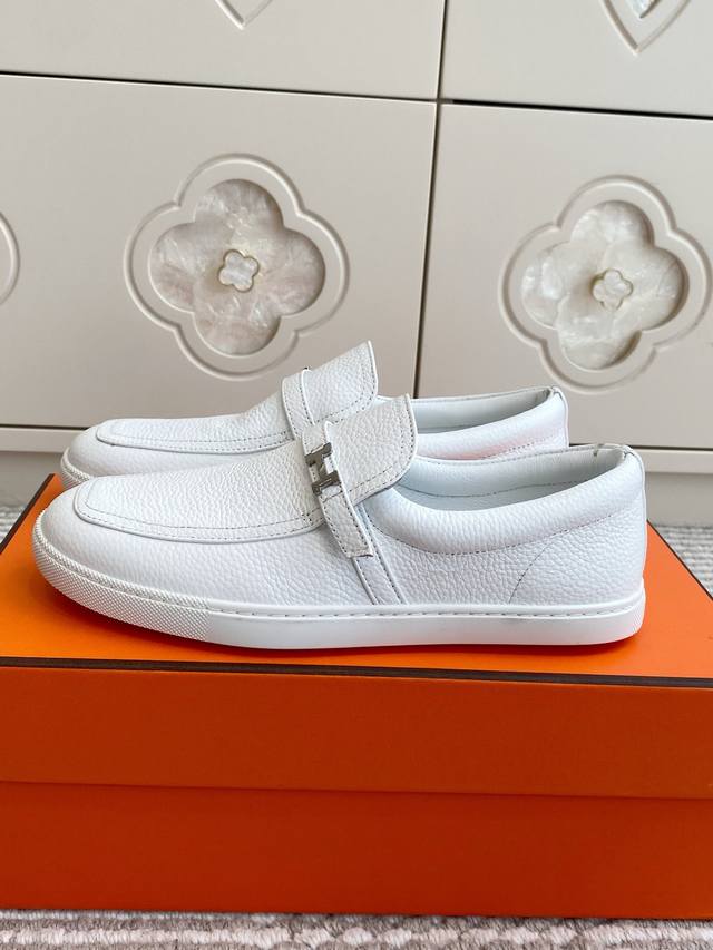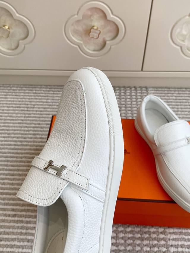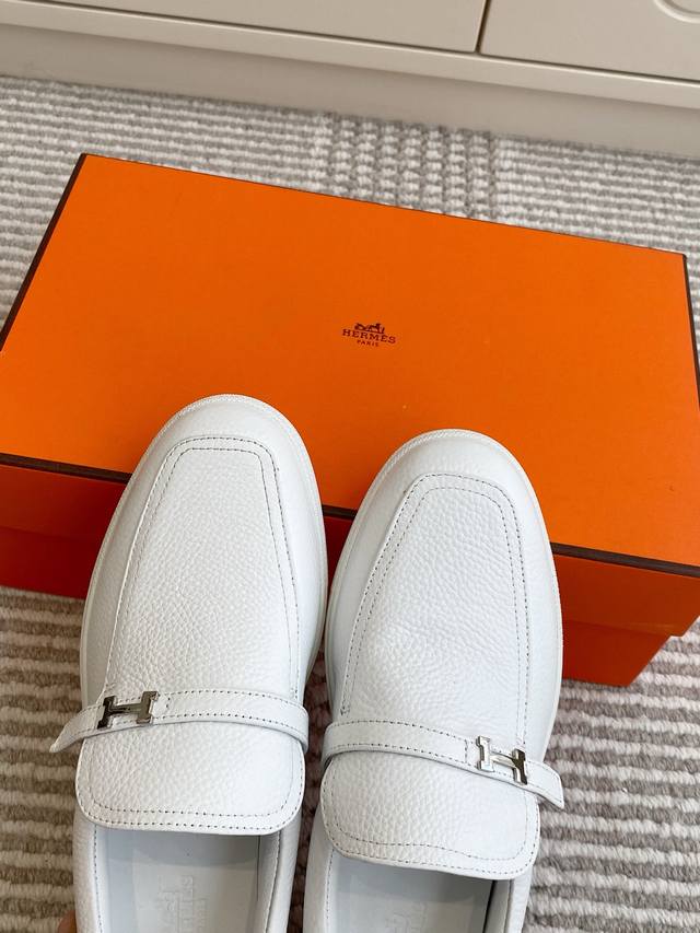 批女 男 Hermes 爱马仕H家 情侣 H扣厚底一脚蹬乐福鞋 顶级品质 经典Mini“H”扣橡胶鞋底