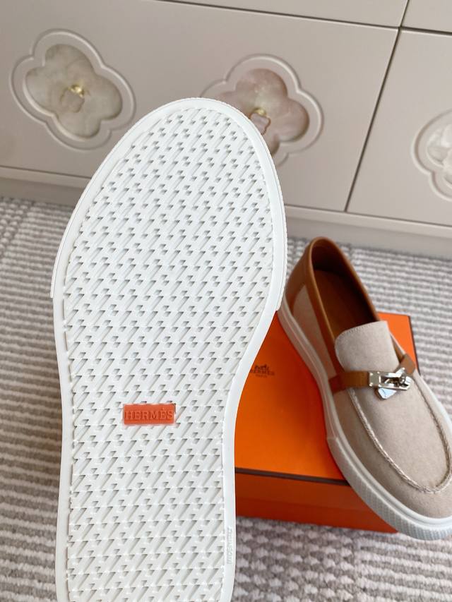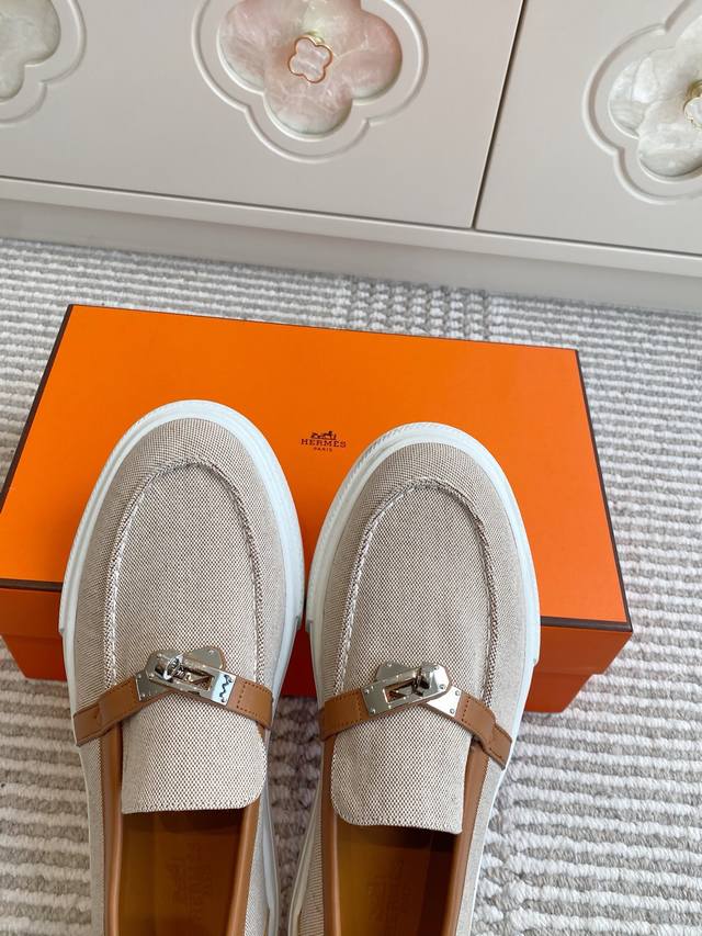 批女 男 Hermes 爱马仕H家 Game Kelly扣厚底乐福鞋 顶级品质 小牛皮乐福鞋风格免系带休闲运动鞋,搭配功能性镀钯Kelly鞋扣。 原版定制Kel