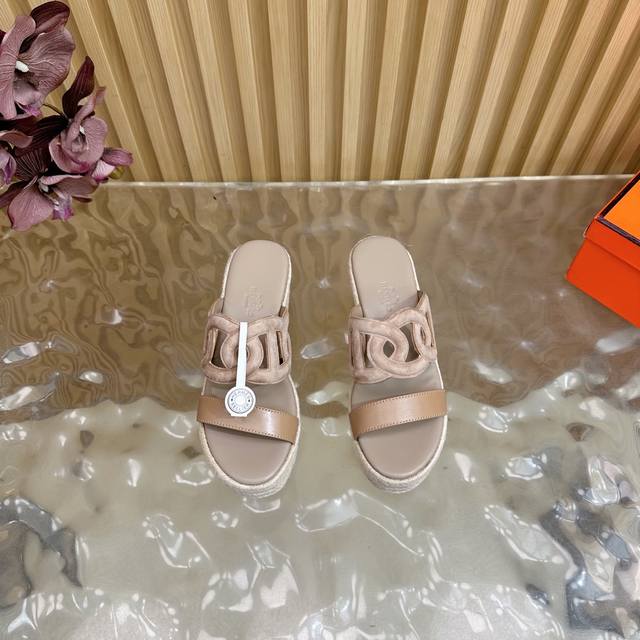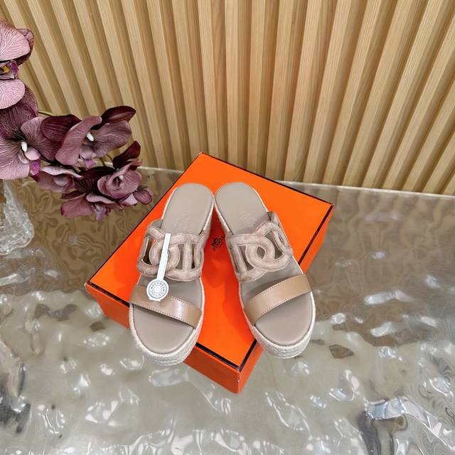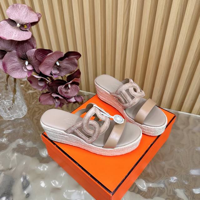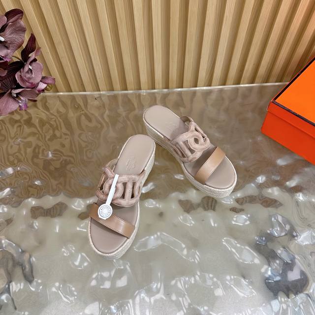 新配色 顶级版本 凉鞋坡跟Hemers Ss 爱马仕早春新款、工字型厚底拖鞋、真皮沿条奢华细节拿到货就知道什么叫高品质~ 小个子Mm的福利来啦 面料:牛皮 羊京