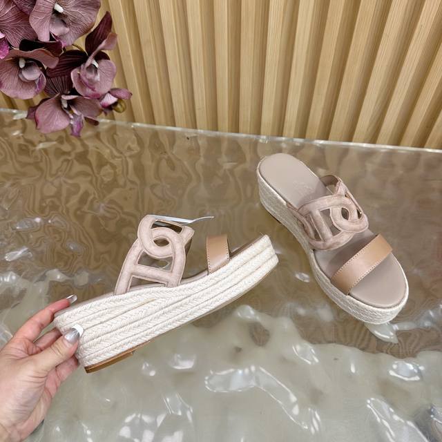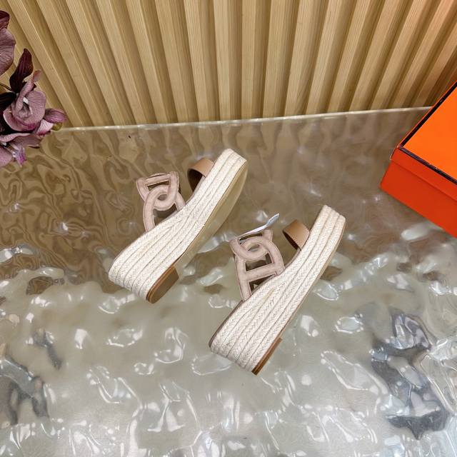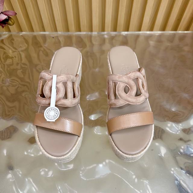 凉鞋坡跟Hemers Ss 爱马仕早春新款、工字型厚底拖鞋、真皮沿条奢华细节拿到货就知道什么叫高品质~