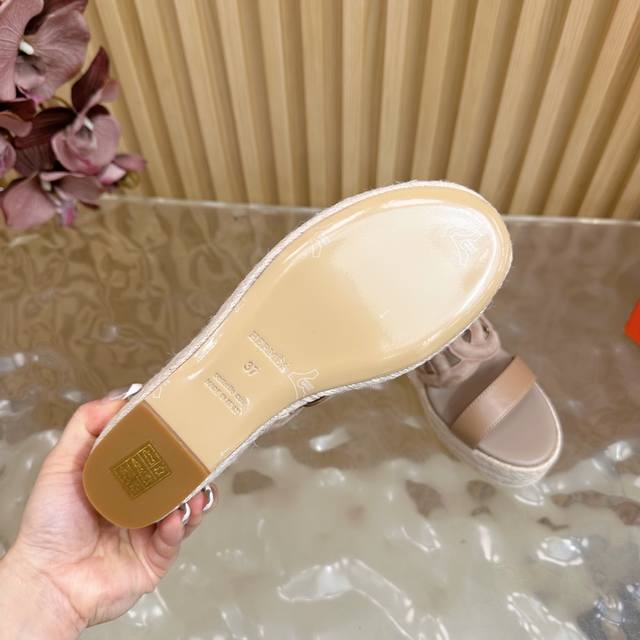 / 新配色 顶级版本 凉鞋坡跟Hemers Ss 爱马仕早春新款、工字型厚底拖鞋、真皮沿条奢华细节拿到货就知道什么叫高品质~ 小个子Mm的福利来啦 面料:牛皮 羊京