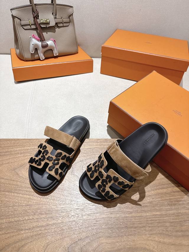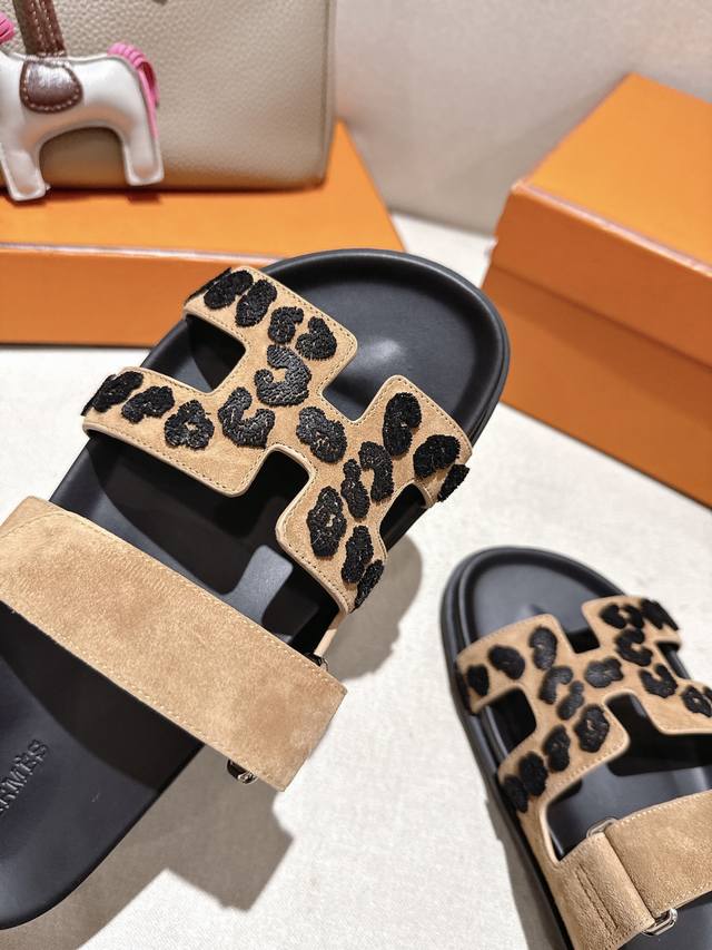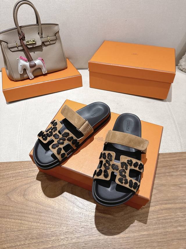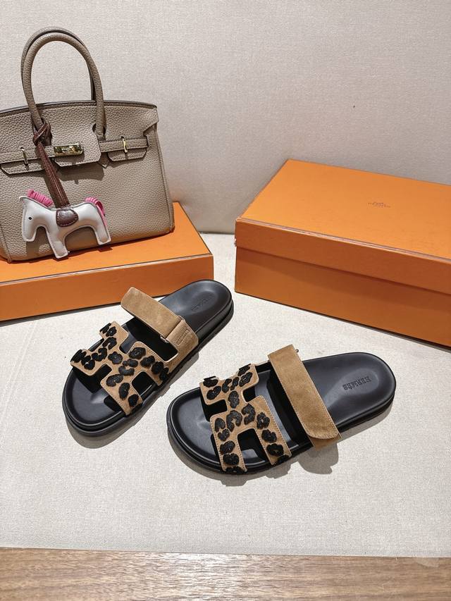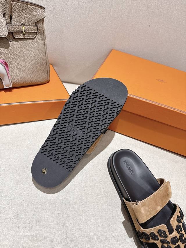爱玛仕 25 2025春夏新品 专柜新款 经典H型Oasis粗跟拖鞋系列 鞋面:原版特定牛皮 手掌纹牛皮 内里:进口混种羊皮...