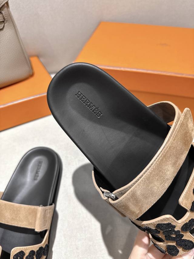 原版外盒包装另配+20 顶级版本 男码+10 上新Herme* H家Chypre二舅鞋H型魔术贴平底新款拼色凉鞋拖鞋...