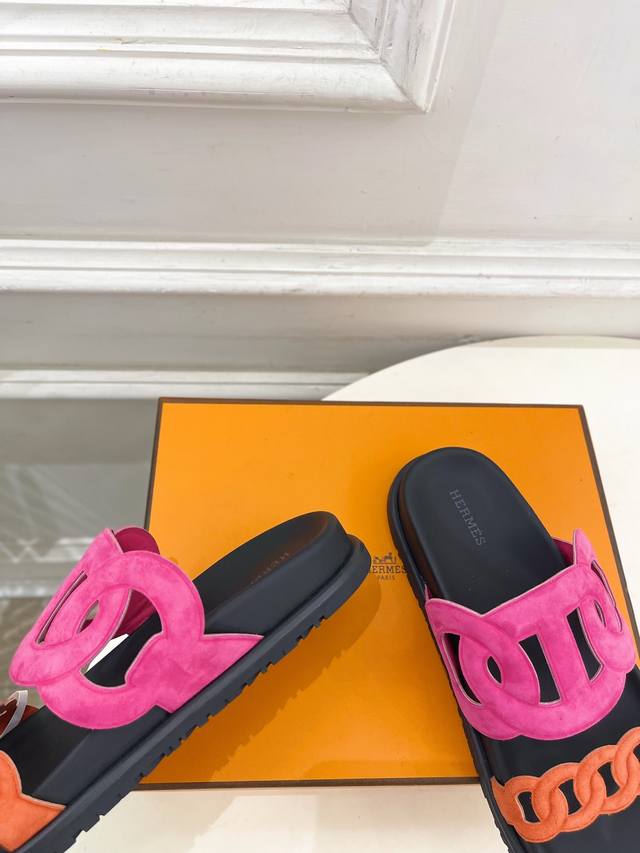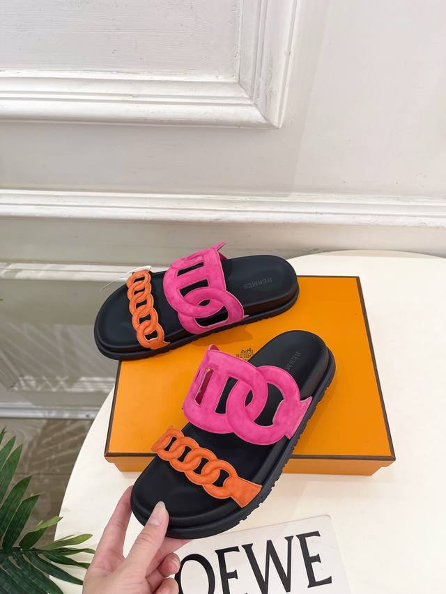 / 爱玛仕 25 2025新品 顶级版本经典Extra镂空猪鼻子休闲拖鞋系列 鞋面:原版特定皮料 内里:进口混种羊皮 大底:原版开模定制防滑大底 跟高:平底 鞋码: