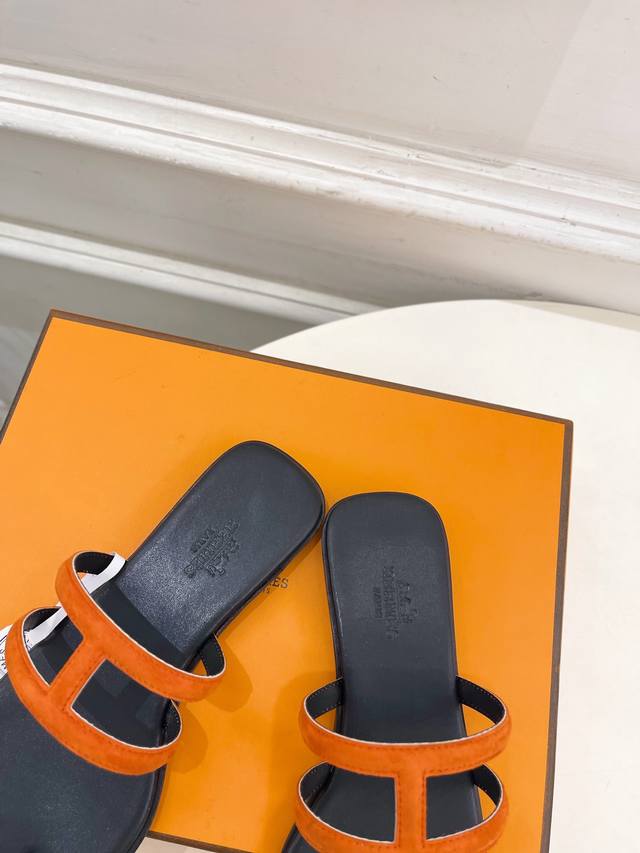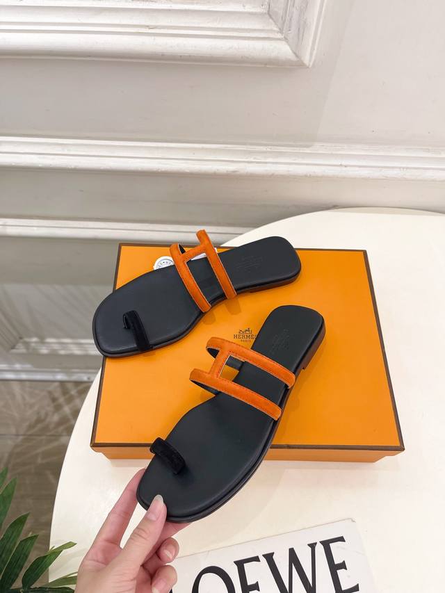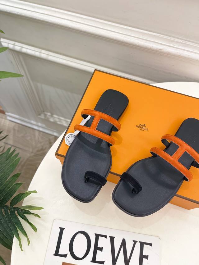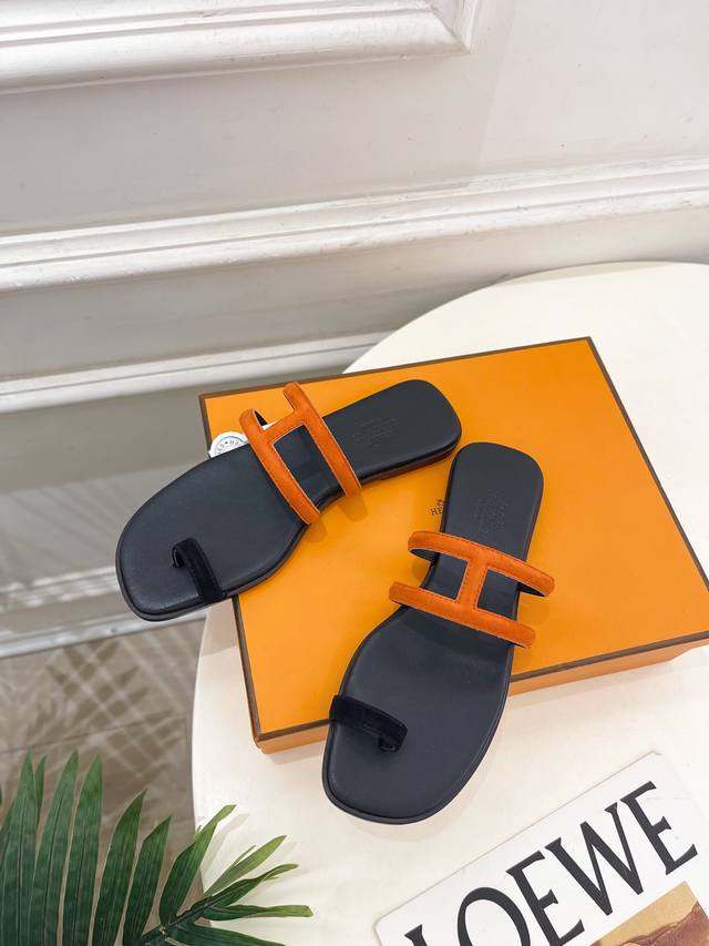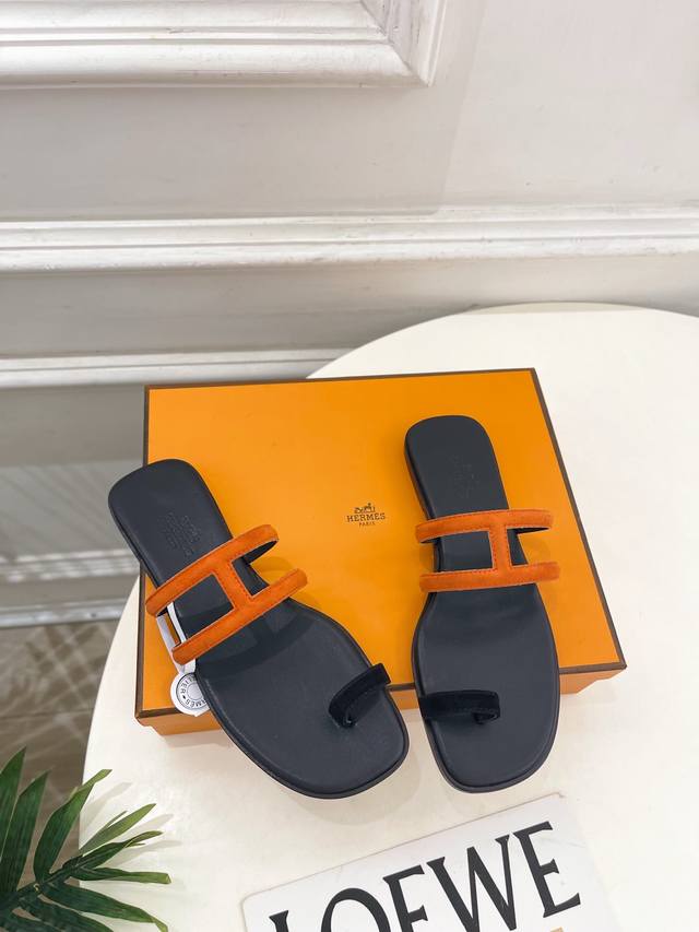 / 爱玛仕 25 2025新品 顶级版本经典H型平底夹趾拖鞋系列 鞋面:原版特定制皮料 内里:进口混种羊皮 大底:原版意大利真皮大底 跟高:平底 鞋码: 35-39