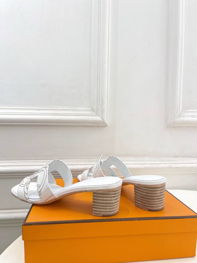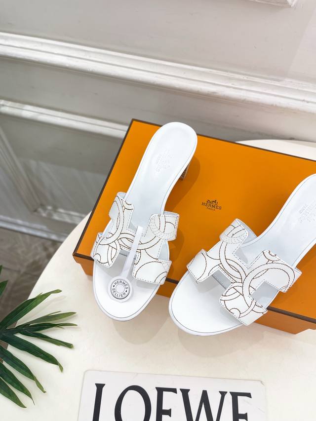 / 爱玛仕 25 2025新品 顶级版本经典H型Oran刺绣小牛皮粗跟拖鞋系列 鞋面:原版特定牛皮 内里:进口混种羊皮 大底:原版意大利真皮大底 跟高:平底 5Cm