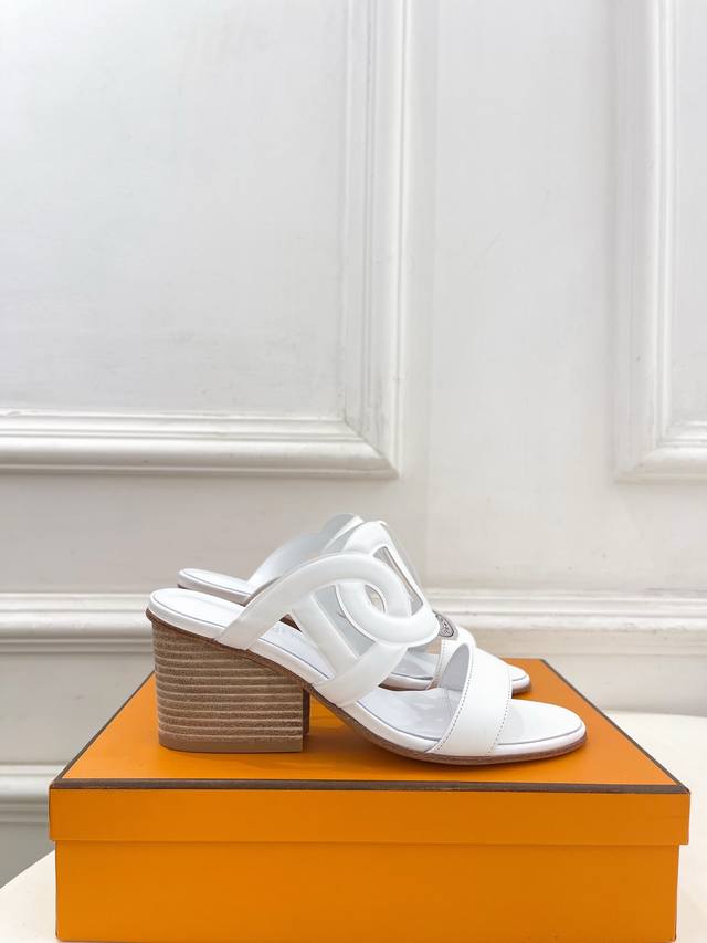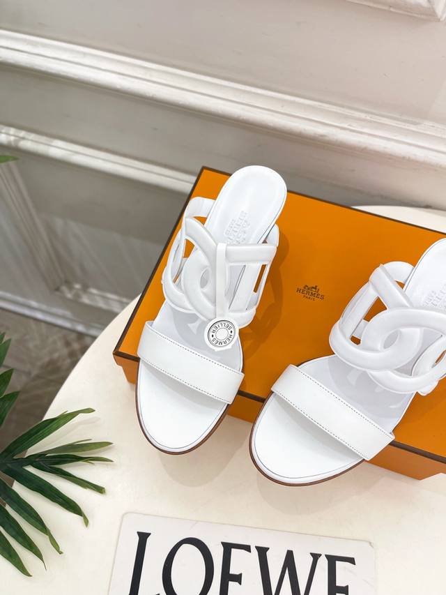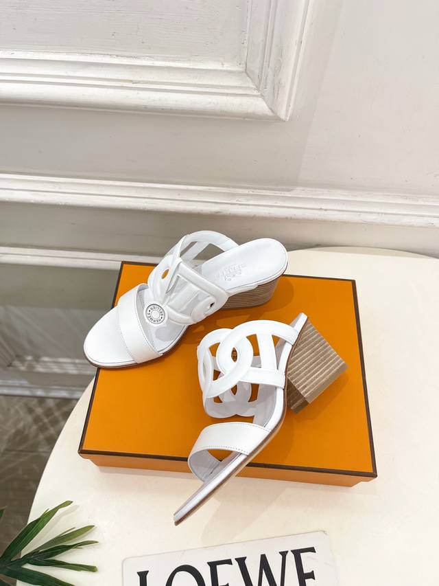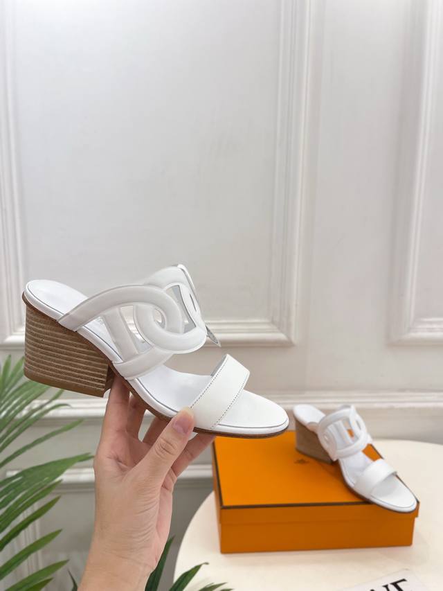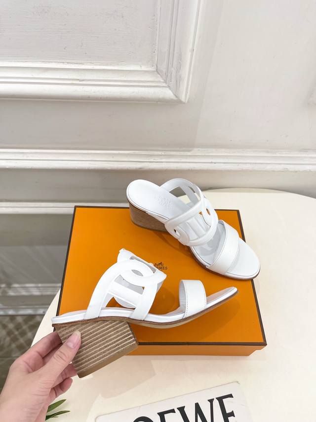 爱玛仕 25 2025春夏新品 专柜新款 经典H型Oasis粗跟拖鞋系列 鞋面:原版特定牛皮 手掌纹牛皮 内里:进口混种羊皮...