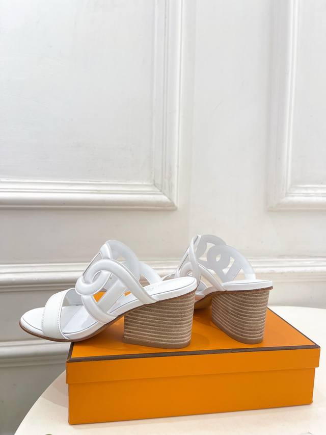 / 爱玛仕 25 2025新品 顶级版本经典Lipari 70镂空猪鼻子坡跟拖鞋系列 鞋面:原版特定制麂皮山羊皮 内里:进口混种羊皮 大底:原版意大利真皮大底 跟高