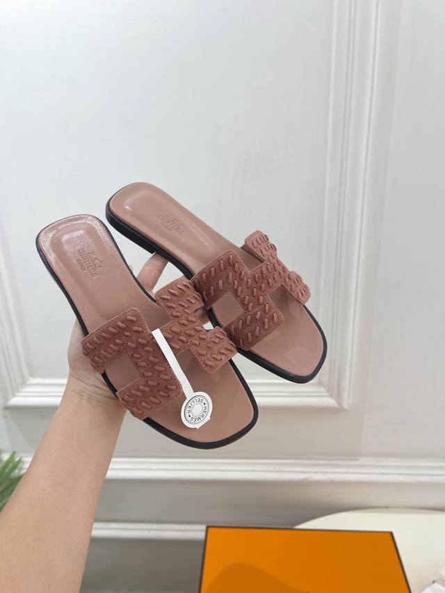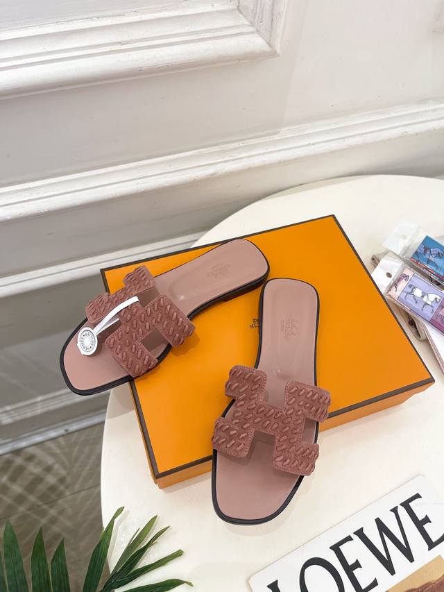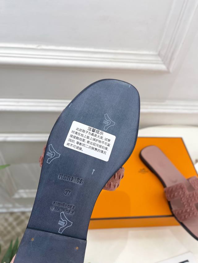 / 爱玛仕 25 2025春夏新品 顶级版本经典H型Oran平底拖鞋系列 鞋面:原版特定牛皮 内里:进口混种羊皮 大底:原版意大利真皮大底 跟高:平底 5Cm 鞋码
