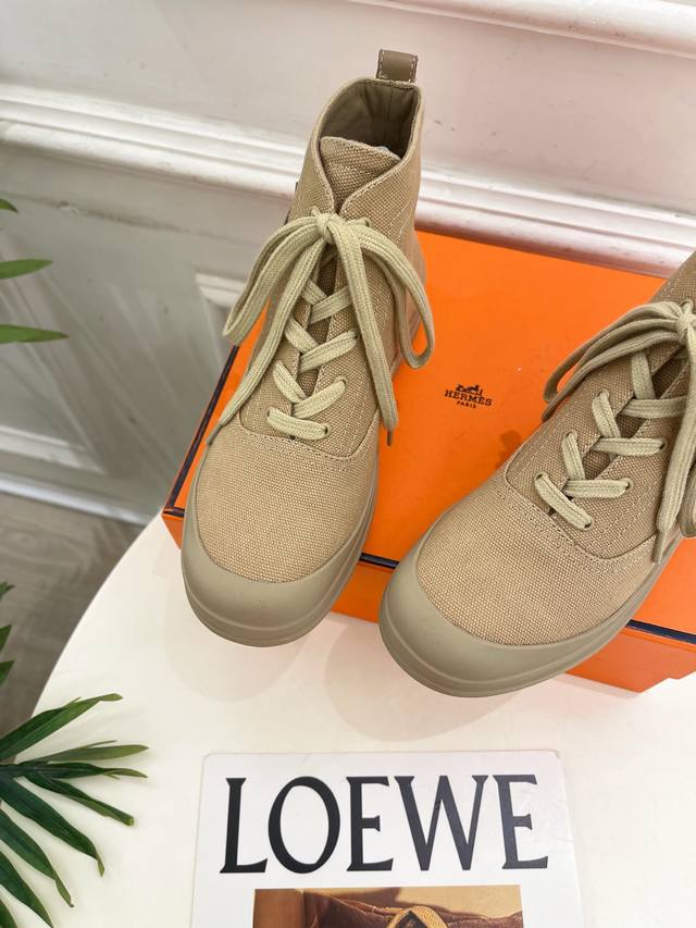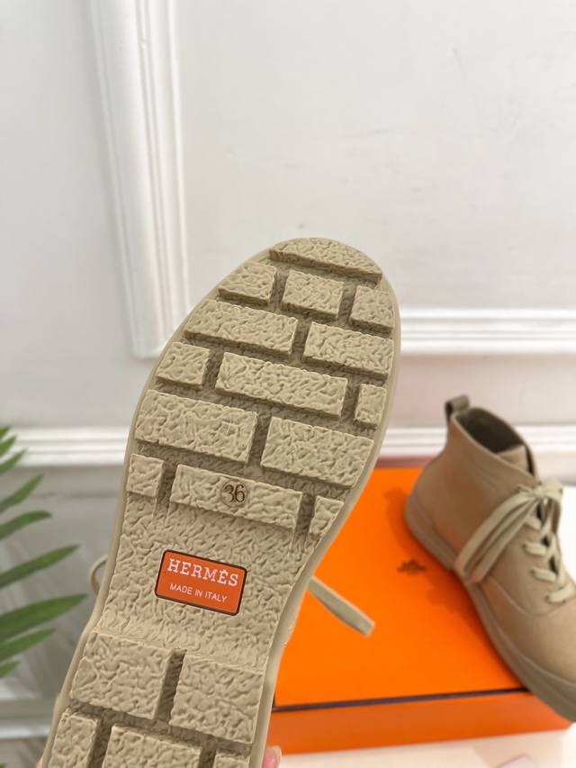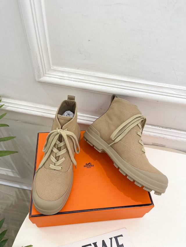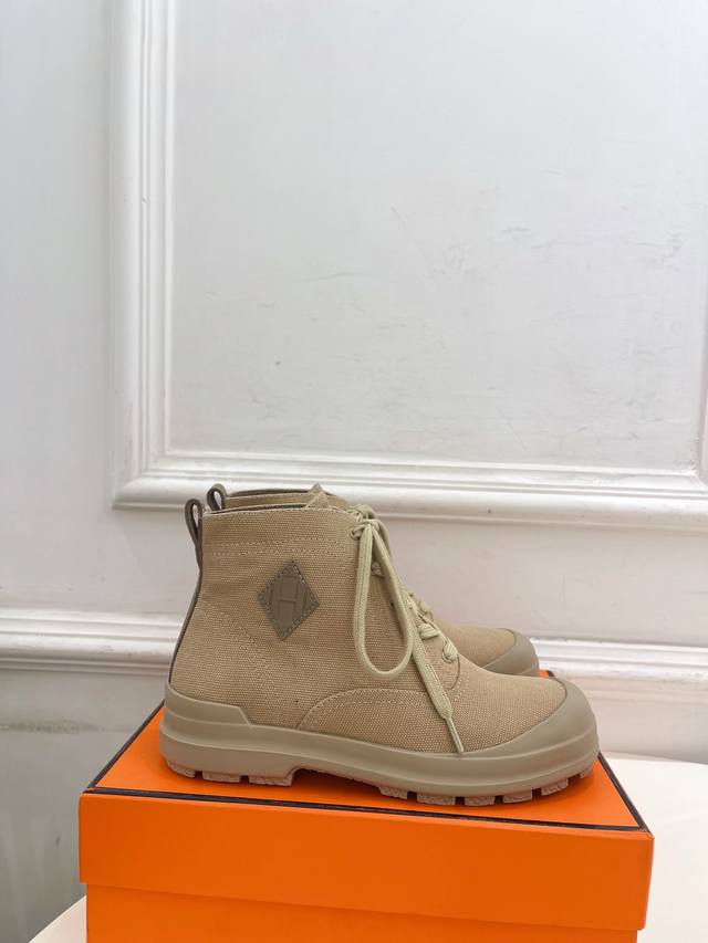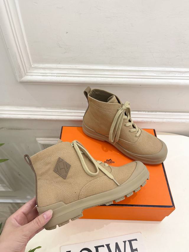 / 爱玛仕 25 2025秋冬新品 专柜新款Kooler休闲系带短靴 系列 鞋面:原版特定棉质帆布 羊绒 内里:进口混种羊皮 大底:原版开模定制防滑大底 跟高:平底