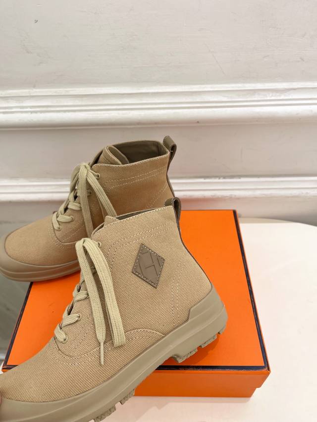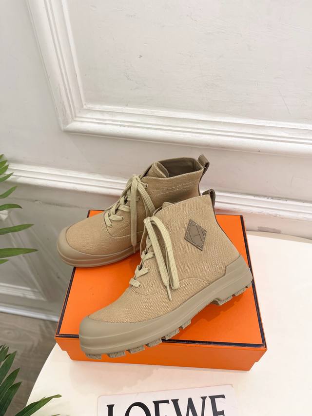 爱玛仕 25 2025秋冬新品 专柜新款Kooler休闲系带短靴 系列 鞋面:原版特定棉质帆布 羊绒 内里:进口混种羊皮 大底:原版开模定制防滑大底 跟高:平底 鞋码: 35-39 40.41定做不退换 出厂价Pp: