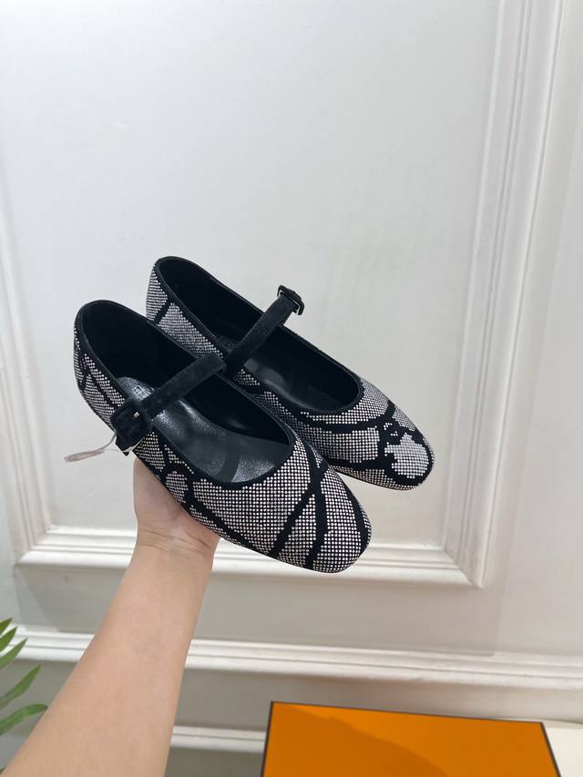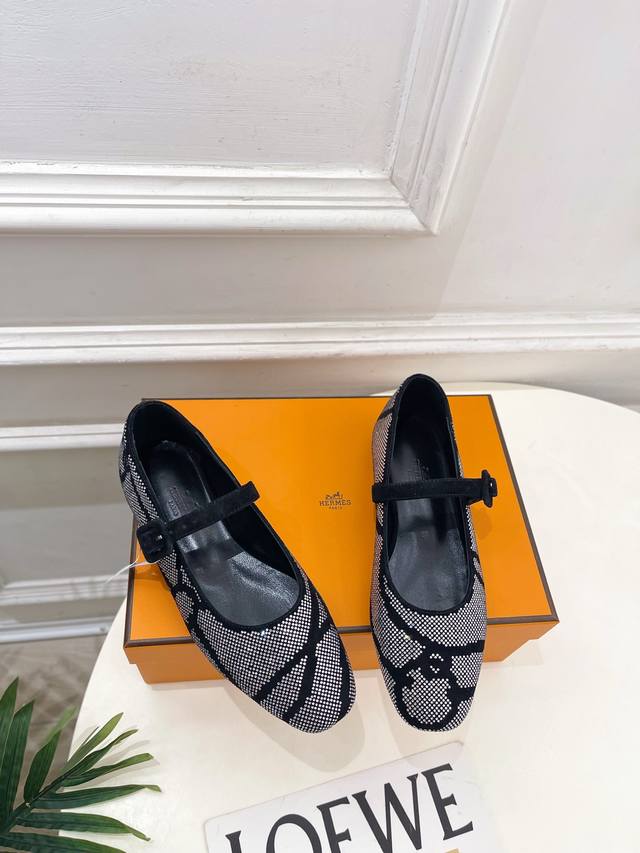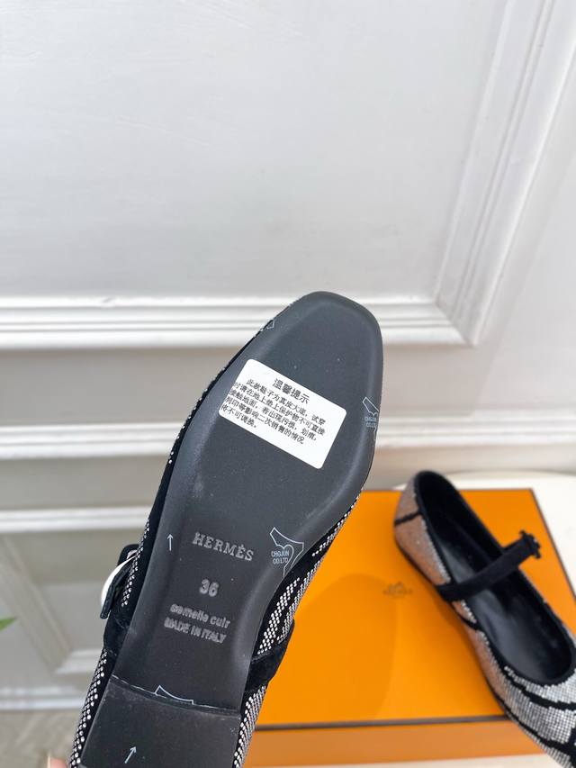 爱玛仕 25 2025秋新新品 专柜新款水钻玛丽珍芭蕾鞋 系列 鞋面:原版特定羊猄烫钻 内里:进口混种羊皮 大底:原版进口真皮大底 跟高:平底 鞋码: 35-3