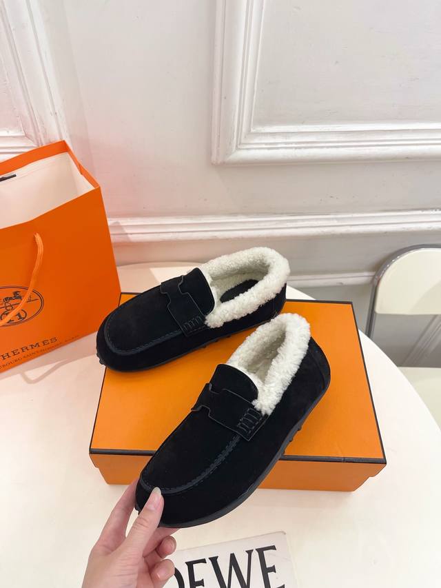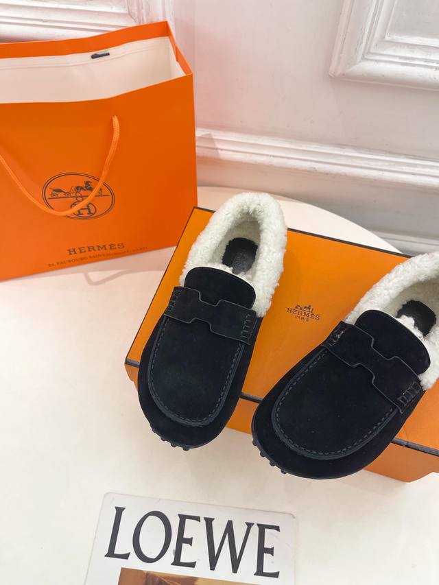 爱玛仕 25 2025秋新新品 专柜新款 经典Lazy休闲羊毛乐福鞋 系列 鞋面:原版特定牛猄 内里:进口羊毛里 大底:原版开模定制防滑大底 跟高:平底 鞋码: