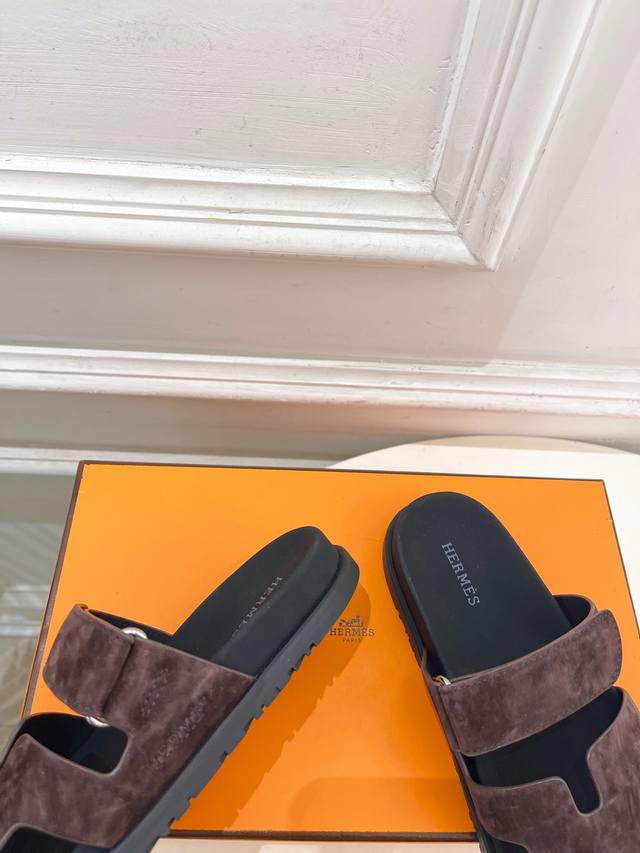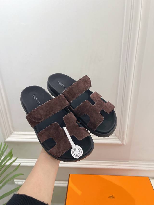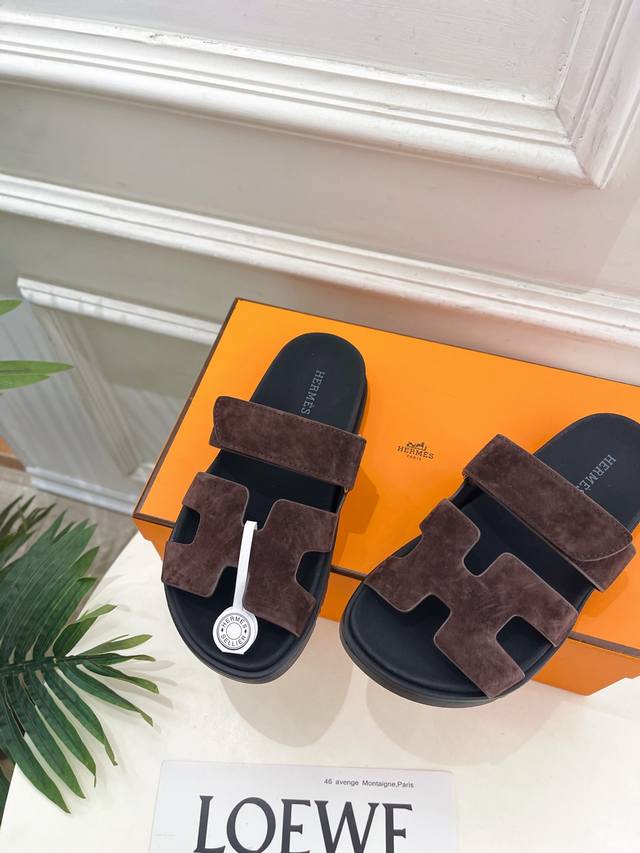 爱玛仕 26 DDD 2026春夏新品 顶级版本H家Chypre经典二舅魔术贴休闲拖鞋系列 DDD 鞋面:原版特定羊猄皮 DDD 内里:进口混种羊皮 DDD 大
