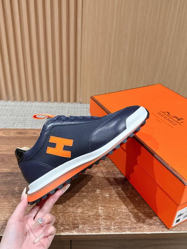 / 爱马仕新款男士运动鞋 时尚与舒适并存! 经典的黑调网布鞋面,搭配上清爽的白色鞋带 ,再加上灰色与浅灰色的层次拼接,简约又不失高级感,时尚度直接拉满!而且鞋面采用
