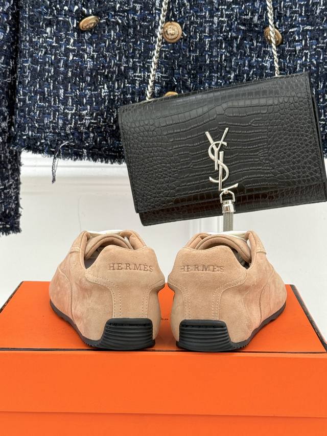 / 爱马仕新款系带跑步休闲德训鞋 经典运动风格+英伦风拼色设计,经典耐看!原版倒模楦型,极致1:1形体,进口小牛皮呈现出精致质感!开模定制A级高密私模大底,奢华包装