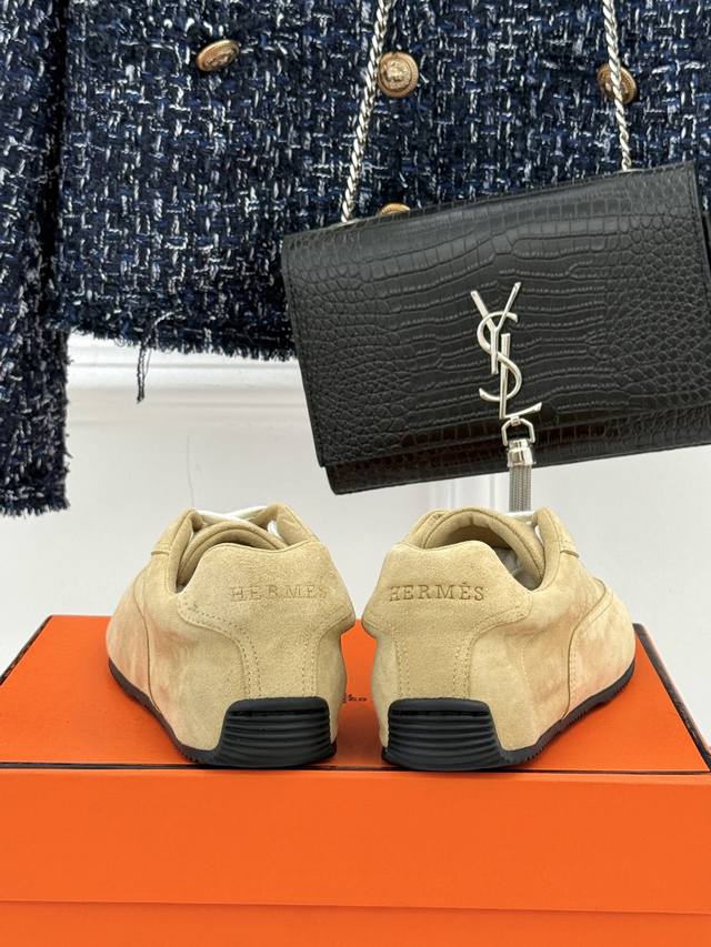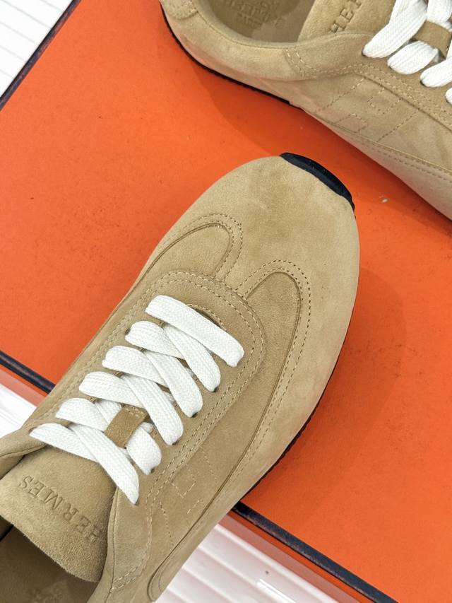 爱马仕新款系带跑步休闲德训鞋 Ddd 经典运动风格+英伦风拼色设计,经典耐看!原版倒模楦型,极致1:1形体,进口小牛皮呈现出精致质感!开模定制A级高密私模大底,奢华包装! Ddd 面料:原版定制牛反绒 牛皮料 Ddd 内里:原版定制羊皮内里垫脚 Ddd 大底:原版开模Tpu大底 Ddd 码数:35-40 [40.41订做] DDD