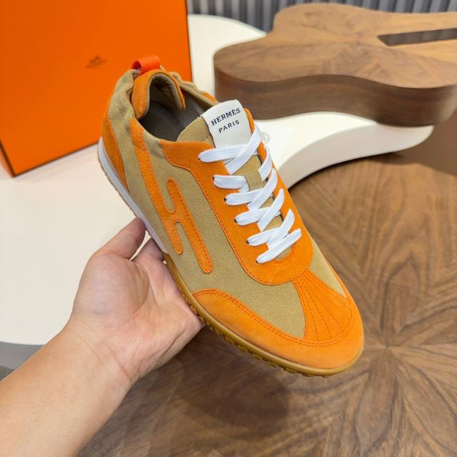 爱马仕新款阿甘德训鞋 小白鞋 镂孔柔软小牛皮运动鞋,配有鞋底,饰有经典Medor铆钉,打造舒适休闲风格。随意搭配 上脚非常轻便舒运动鞋男款实拍最值得的入手的爱马仕男款运动鞋传说中不配货也要买的鞋潮流 时尚 舒适 百搭 Ddd 虽然涨价 但价格p真不贵新出的配色都很好看。男款,选择没有那么多不过也是很好看, 进口牛皮磨砂材质 羊皮内里 原版开模大底 Ddd ,Size:男39-44 38-45定制 DDD