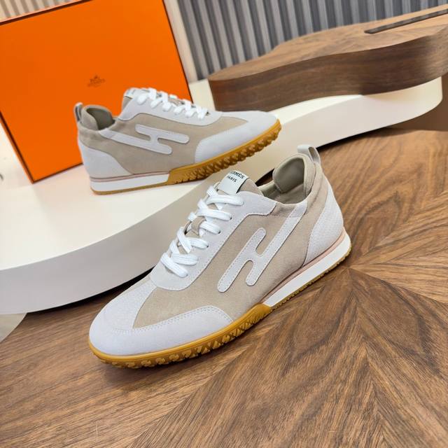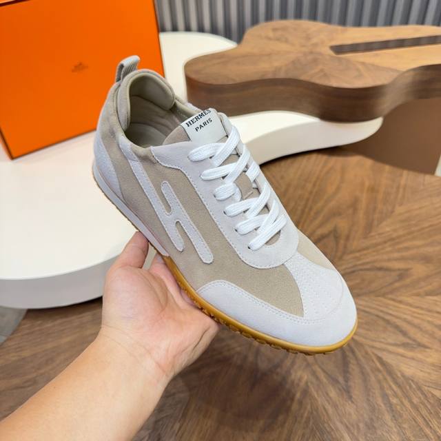 爱马仕新款阿甘德训鞋 小白鞋 镂孔柔软小牛皮运动鞋,配有鞋底,饰有经典Medor铆钉,打造舒适休闲风格。随意搭配 上脚非常轻便舒运动鞋男款实拍最值得的入手的爱马仕男款运动鞋传说中不配货也要买的鞋潮流 时尚 舒适 百搭 Ddd 虽然涨价 但价格p真不贵新出的配色都很好看。男款,选择没有那么多不过也是很好看, 进口牛皮磨砂材质 羊皮内里 原版开模大底 Ddd ,Size:男39-44 38-45定制 DDD