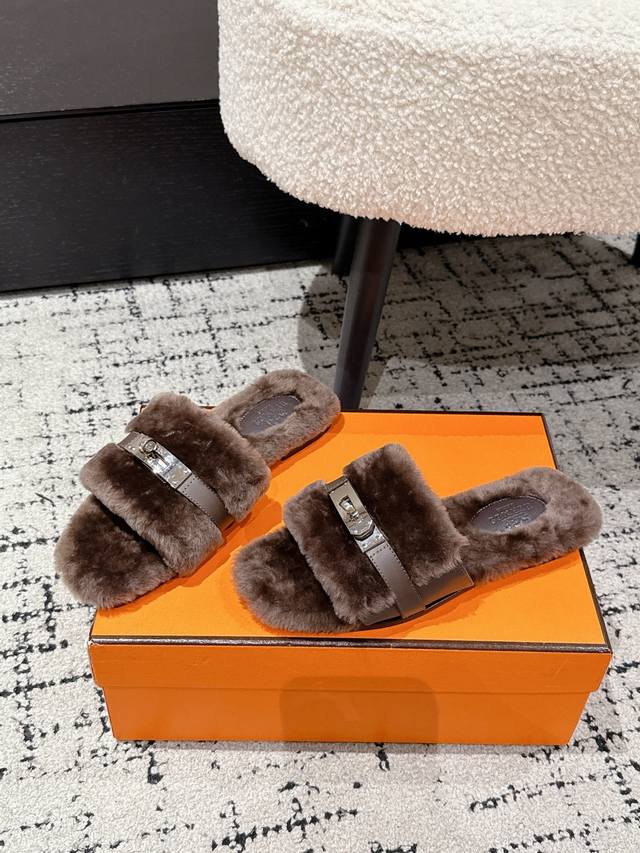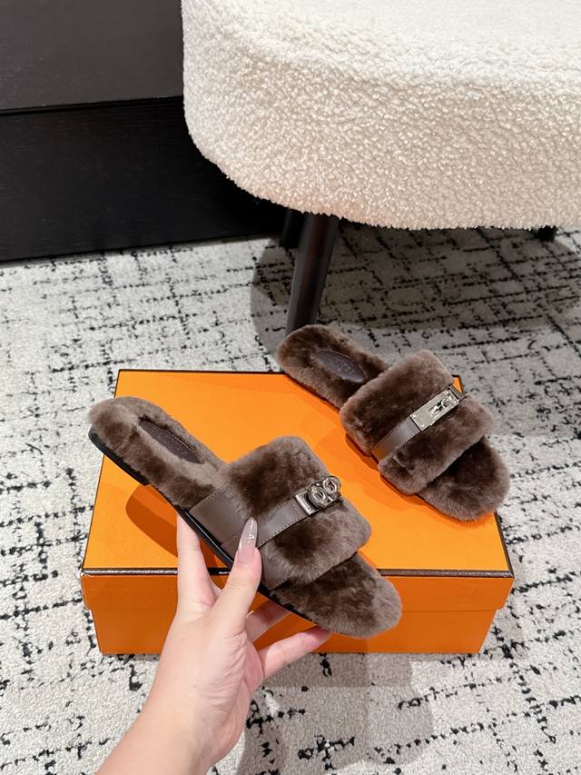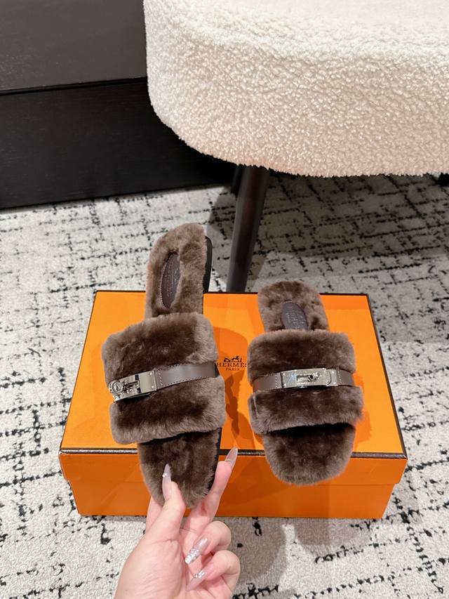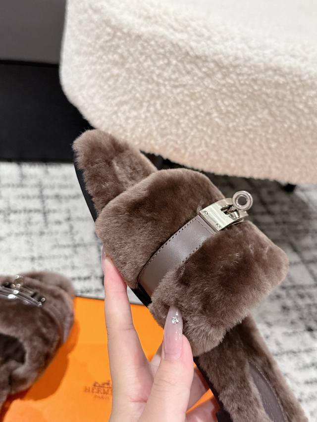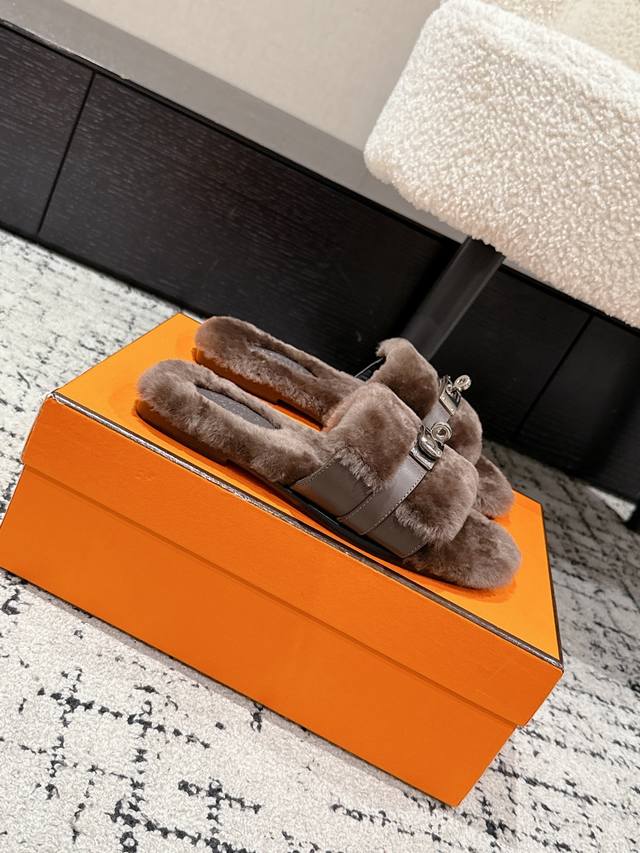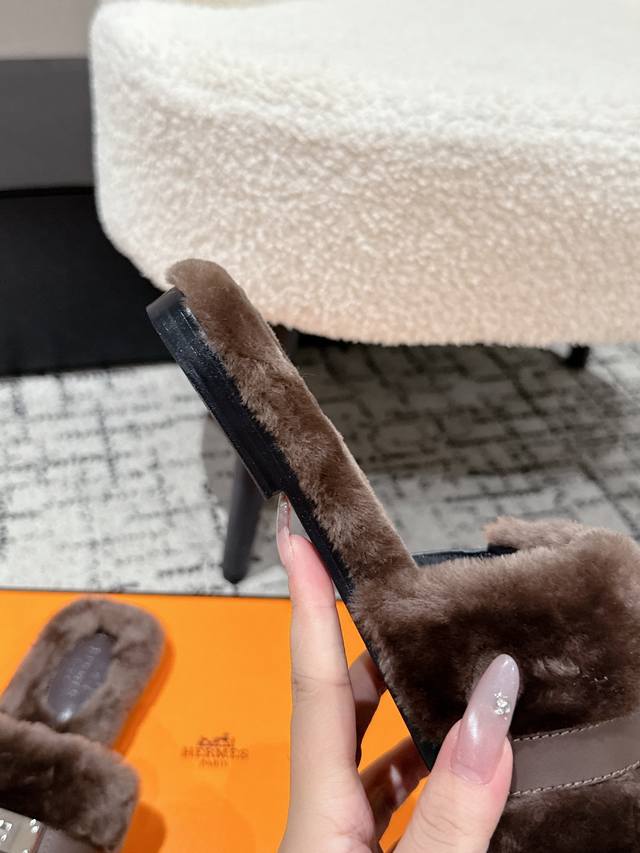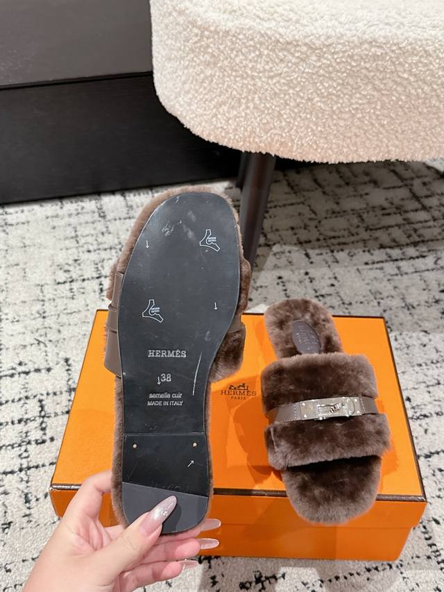 爱马仕 25 最新 秋冬 皮毛一体卷糕毛二舅拖 DDD 今年面料均选用羊羔毛 ,毛茸茸的 敲可爱的,踩云脚感,光脚或者搭配个袜子穿,都时髦的不行哦 DDD 面料:羊毛 DDD 内里:进口羊羔毛 DDD 鞋底:原版真皮鞋底 DDD Size:#35-42 40.41.42定制 DDD