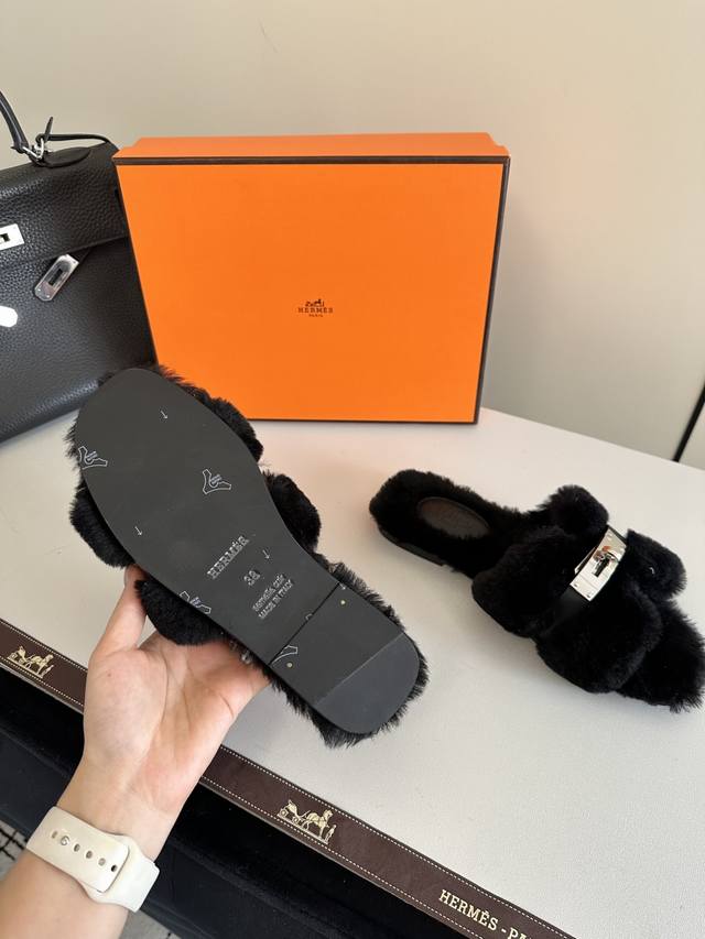 / 爱马H家2025Ss秋冬新款毛毛拖鞋毛毛鞋 这季节美鞋太多这款毛毛拖真的是让人无法自拔真太酷太百搭了~ 敲可爱的,踩云脚感,光脚或者搭配个袜子穿,都时髦的不行哦