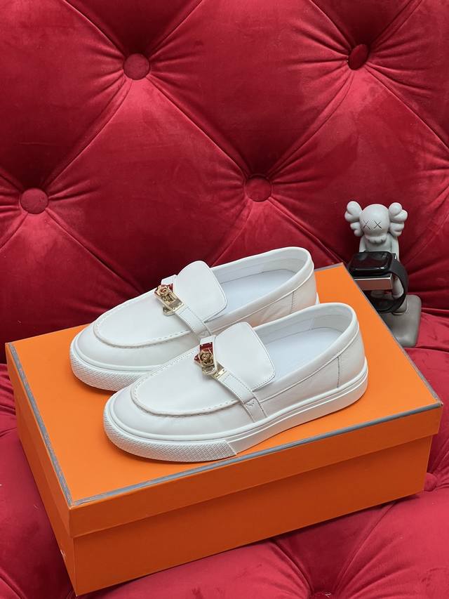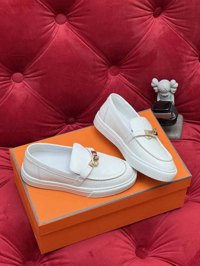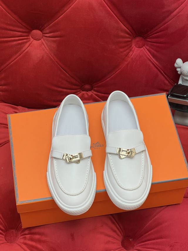 独家实拍 代购版本 男款+10 DDD Hermes 爱马仕 H家 Game Kelly扣厚底乐福鞋 DDD 小牛皮乐福鞋风格免系带休闲运动鞋 搭配功能性镀钯Kelly鞋扣 DDD 原版定制Kelly鞋扣 定制进口小牛皮 掌纹牛皮 羊京 羊皮内里 原版开模大底 DDD Size:女35-41 男39-45 女41男46定做 DDD
