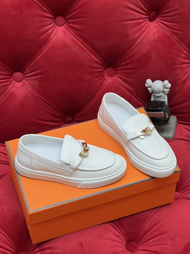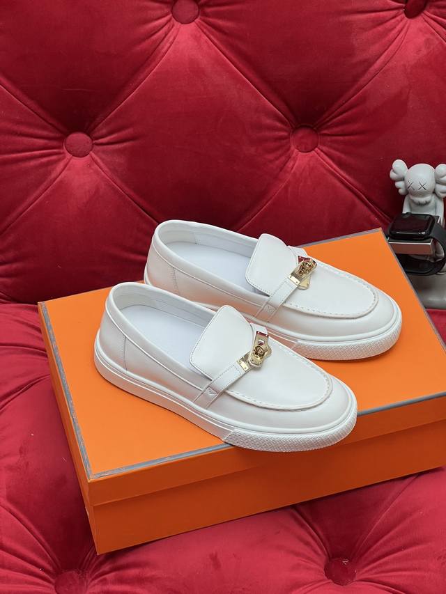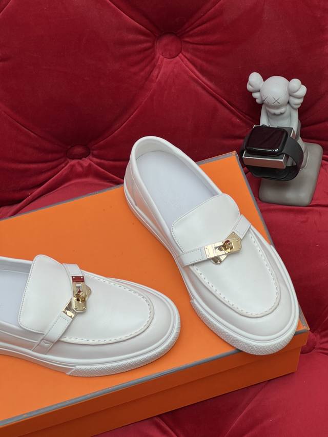 / 独家实拍 代购版本 男款+10 Hermes 爱马仕 H家 Game Kelly扣厚底乐福鞋 小牛皮乐福鞋风格免系带休闲运动鞋 搭配功能性镀钯Kelly鞋扣 原