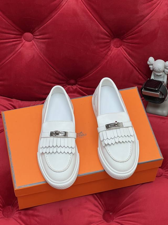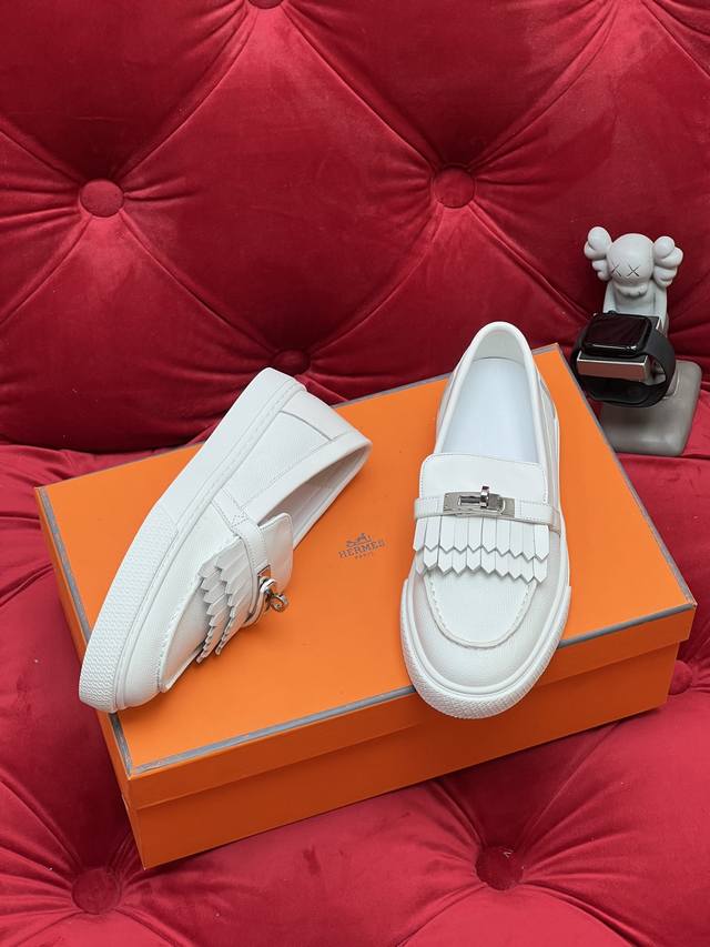 / 独家实拍 顶级代购版本 Hermes 爱马仕 H家 Game Kelly扣厚底乐福鞋 小牛皮乐福鞋风格免系带休闲运动鞋 搭配功能性镀钯Kelly鞋扣 原版定制K