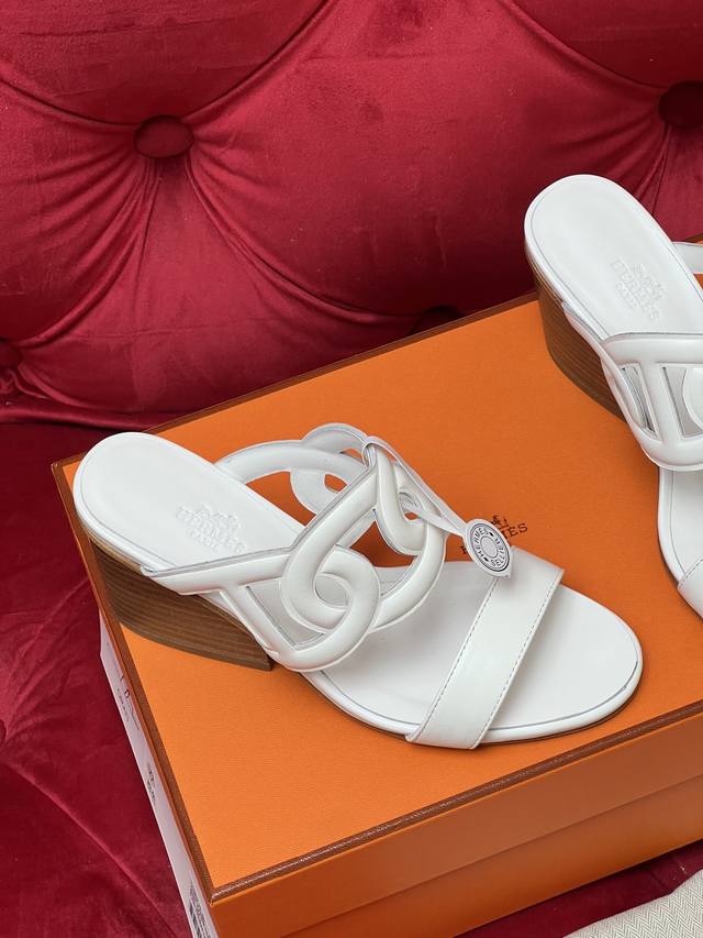 爱玛仕 25 2025春夏新品 专柜新款 经典H型Oasis粗跟拖鞋系列 鞋面:原版特定牛皮 手掌纹牛皮 内里:进口混种羊皮...