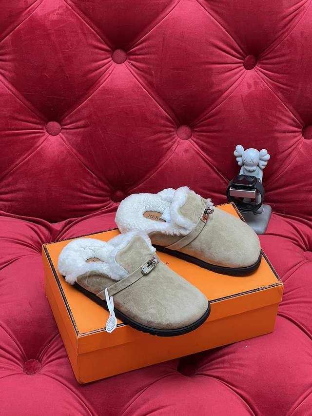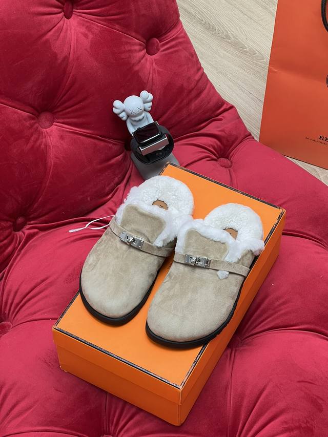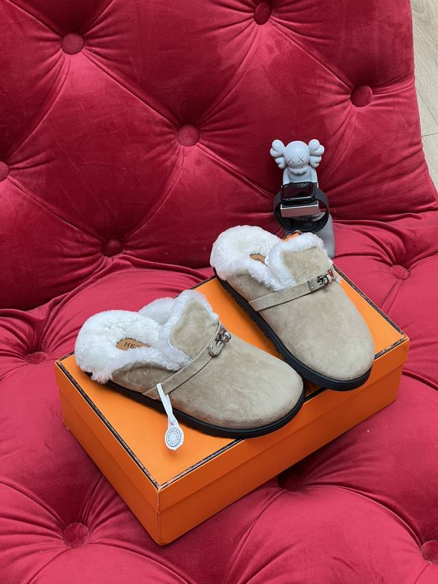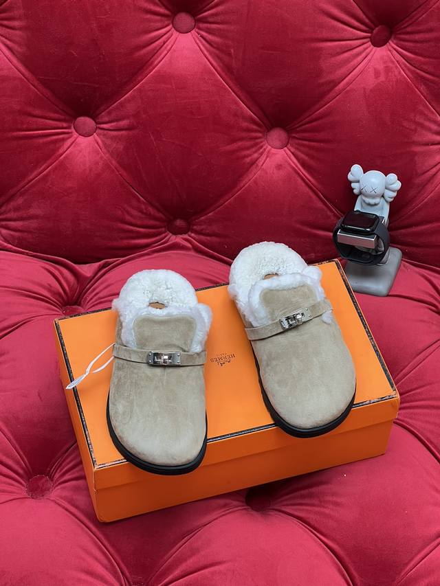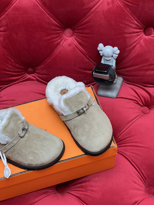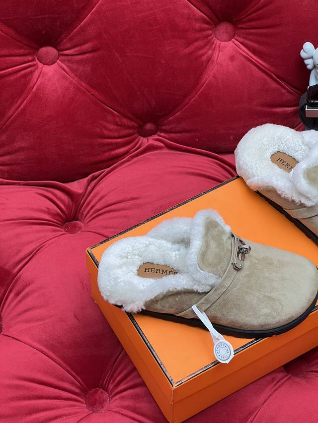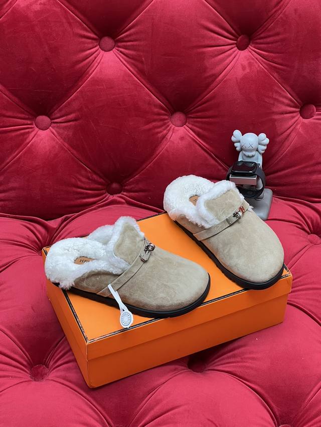 独家实拍 顶级版本 24Ss Hermes最新Kelly扣 勃肯毛拖鞋 泰迪 穆勒鞋 原版购入开发 爱马仕Go系列 麂皮山羊皮和羊毛皮穆勒鞋 DDD 经典“H”型鞋面细节 打造舒适现代风格 毛茸茸的 敲可爱的 光脚或者搭配个袜子穿 都时髦的不行哦 DDD 面料:原版进口头层牛皮 DDD 内里:进口澳洲羊羔毛 DDD 鞋底:原版开模防滑Tpu材质 DDD Size: 35-41 40.41 定做不退换 DDD