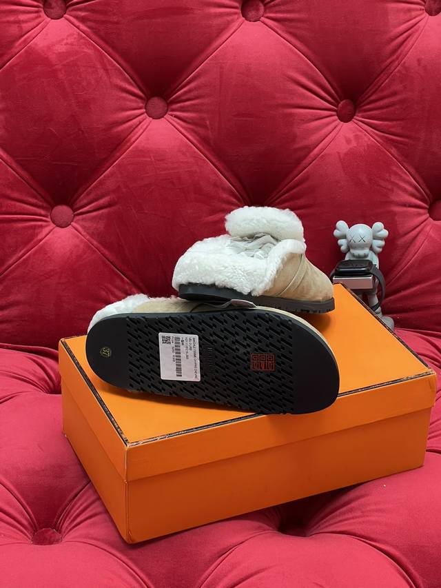 / 独家实拍 顶级版本 24Ss Hermes最新Kelly扣 勃肯毛拖鞋 泰迪 穆勒鞋 原版购入开发 爱马仕Go系列 麂皮山羊皮和羊毛皮穆勒鞋 经典“H”型鞋面细
