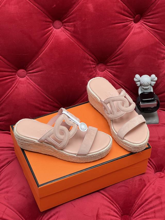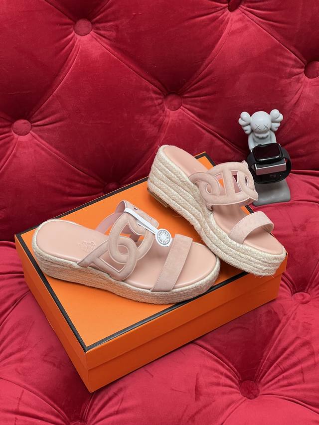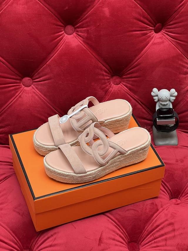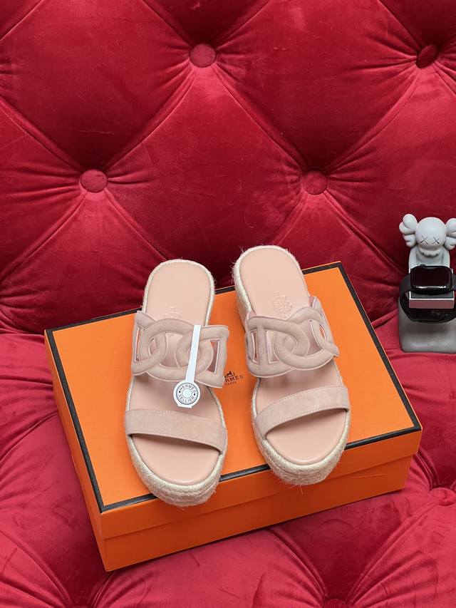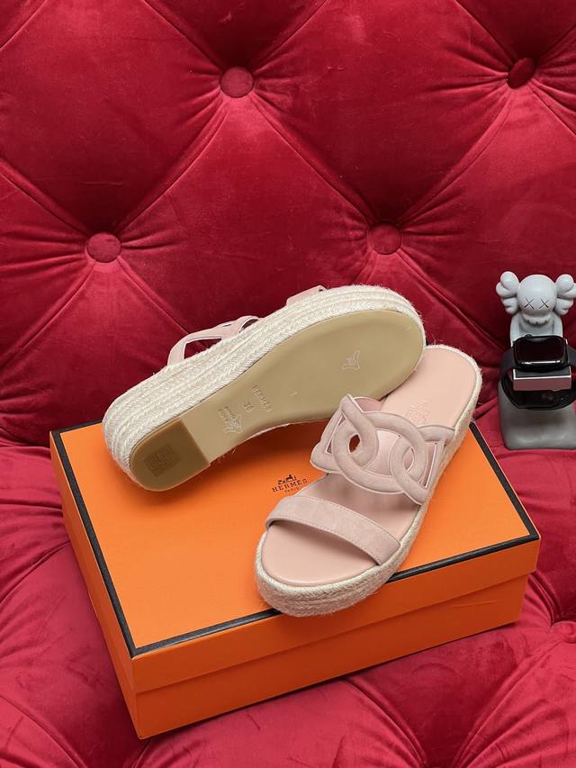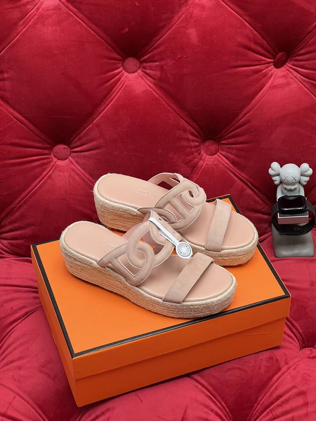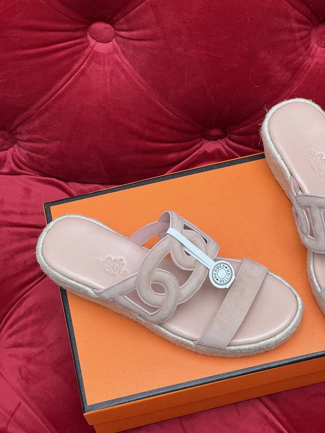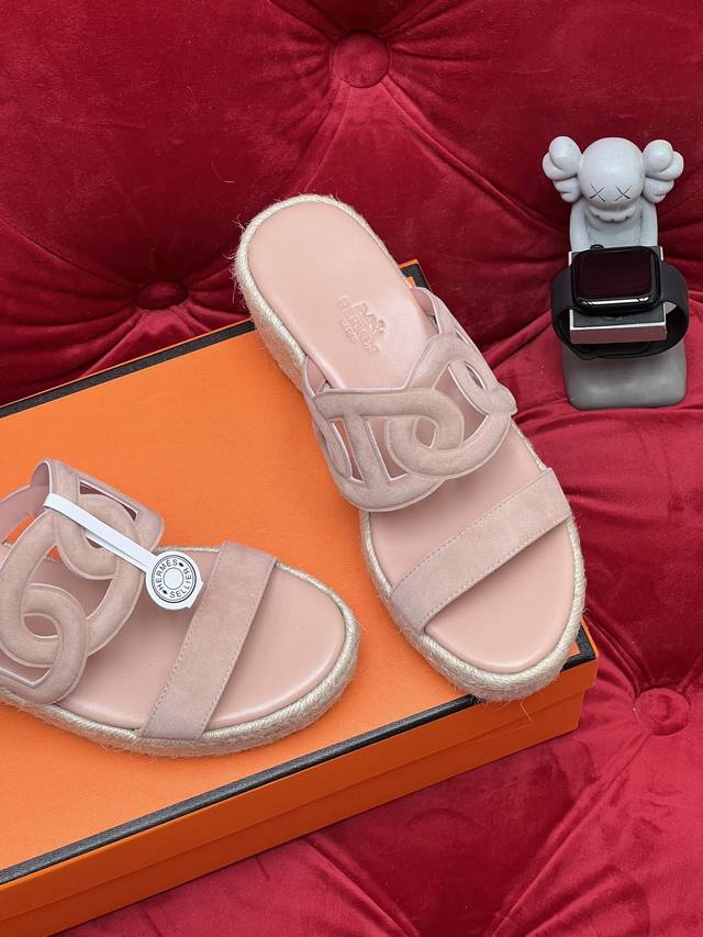 独家实拍 顶级版本 H家 Ss秋冬新款 Herme*S最近火到不行的麻绳包边厚底一字拖 搭配各种彩色袜子 确实很潮哦~ DDD 鞋面:进口小牛皮 DDD 内里:进口混种羊皮里 DDD 大底:麻绳包边 pu水台加真皮大底 DDD Size:34-41 34.40.41定做不退不换 DDD