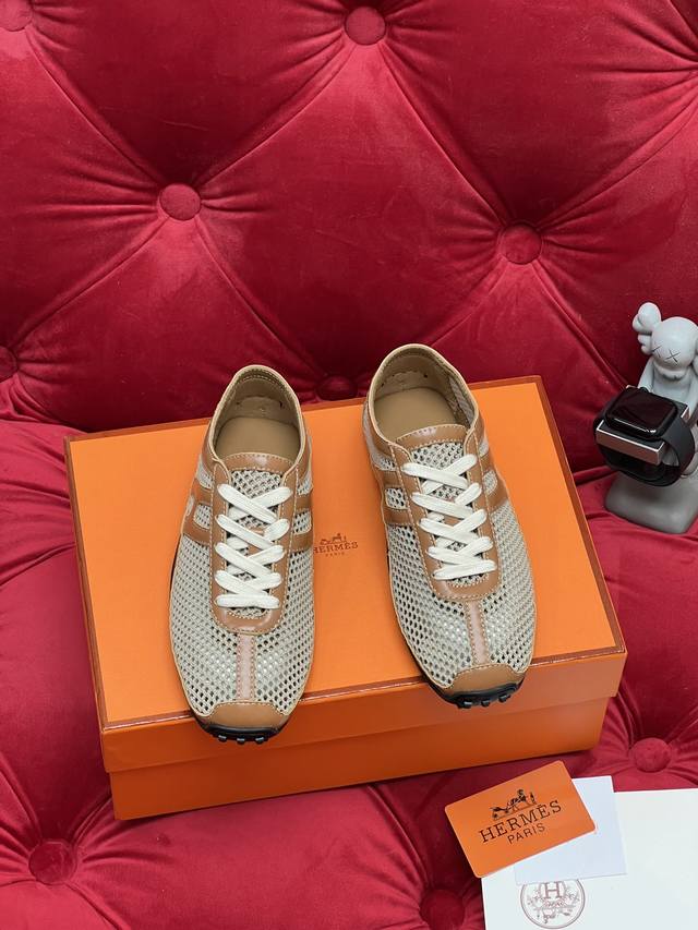 独家实拍 顶级版本 Hermes爱马仕H家 25Ss新款网面 玛丽珍 休闲鞋 DDD 丑鞋的时髦 上脚真心不丑 穿上就是时髦人儿 脚感非常舒服又轻便 经典运动风格 网面色设计 丑的耐看 DDD 面料:原版定制头层牛皮网布 DDD 内里:原版定制羊皮 DDD 大底:原版开模防滑大底 DDD Size:35-41 40.41订做不退换 DDD