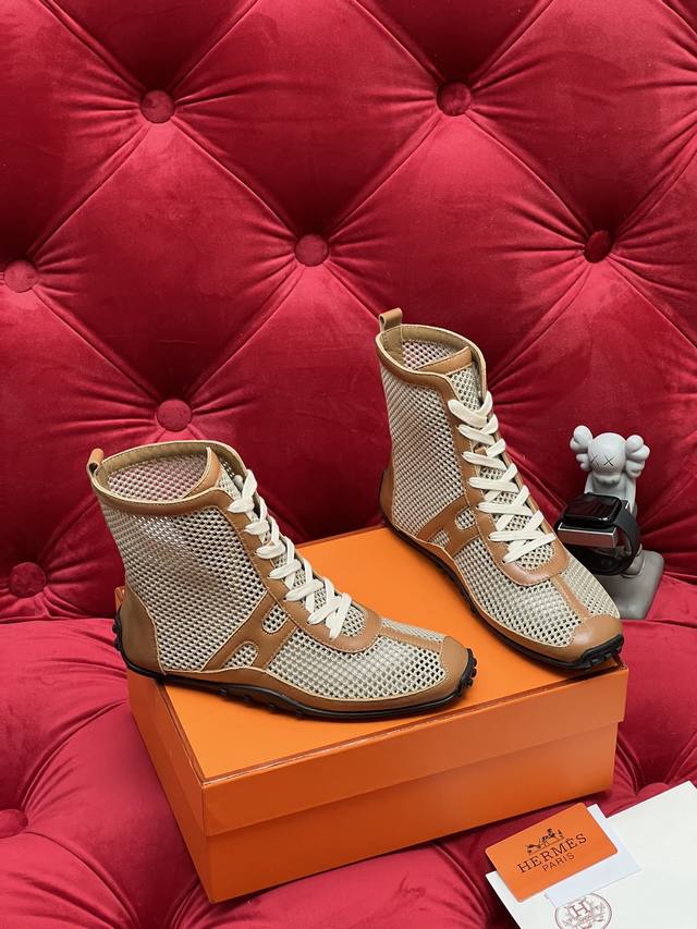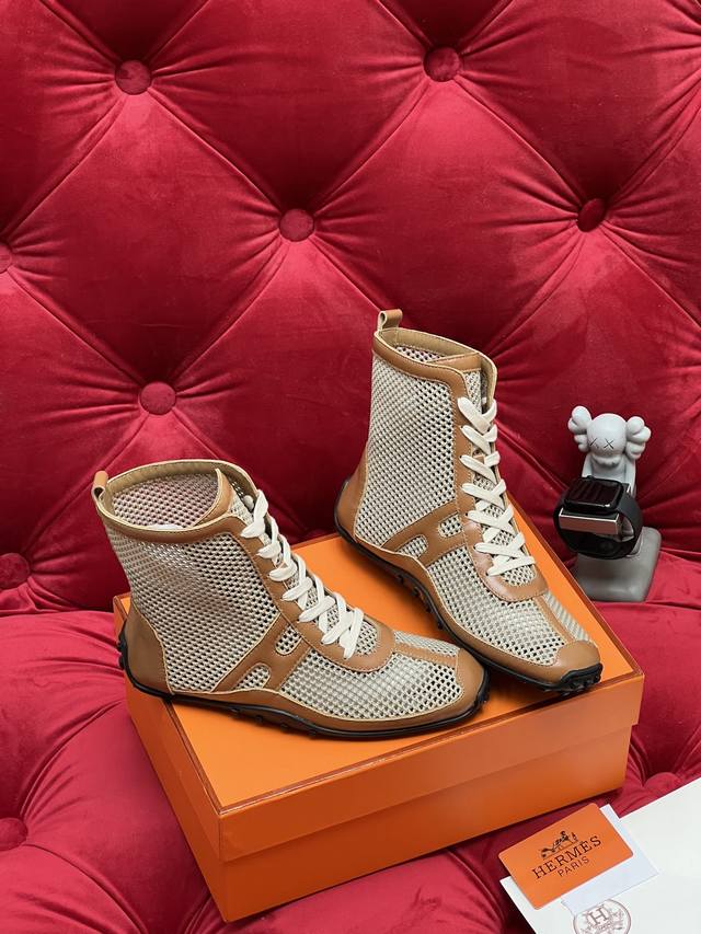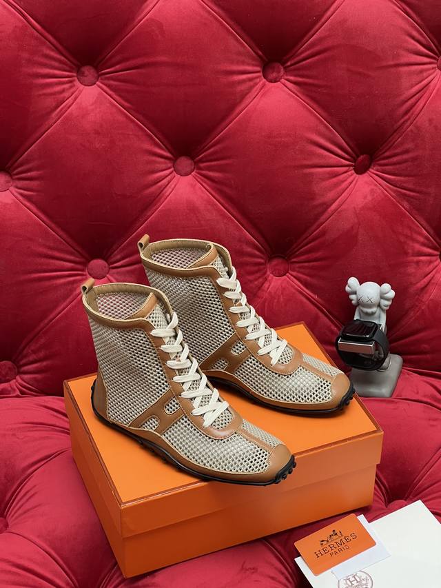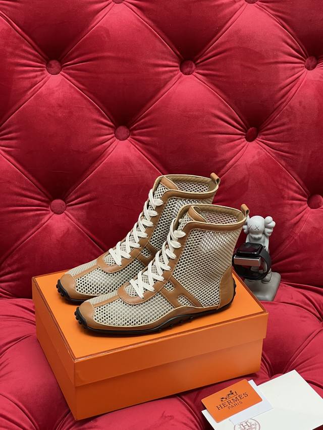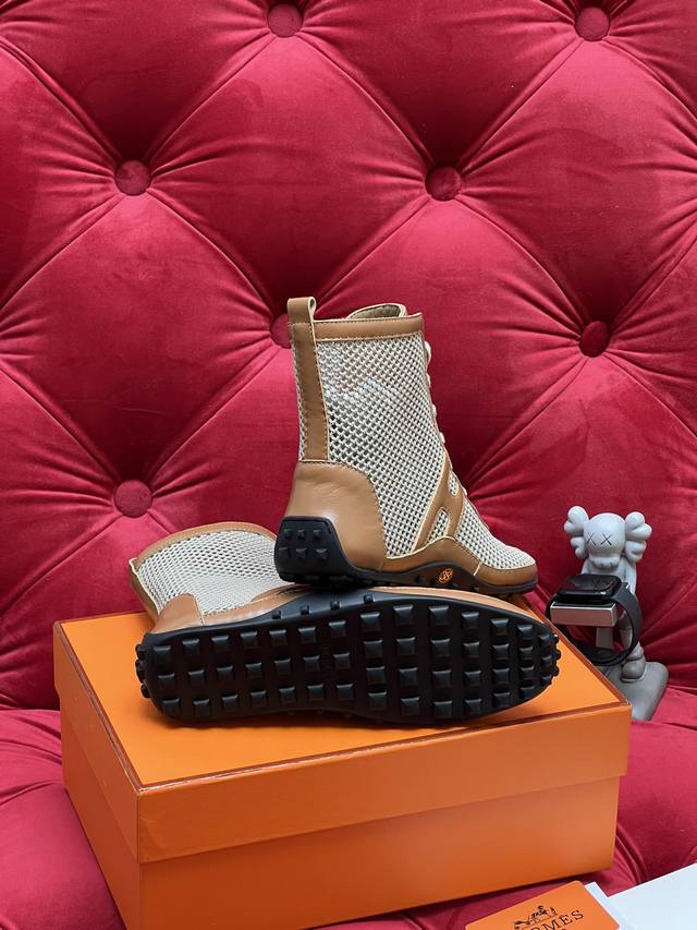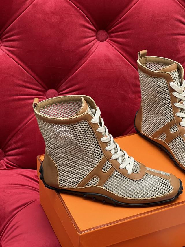 独家实拍 顶级版本 Hermes爱马仕H家 25Ss新款网面 玛丽珍 短靴 DDD 丑鞋的时髦 上脚真心不丑 穿上就是时髦人儿 脚感非常舒服又轻便 经典运动风格 网面色设计 丑的耐看 DDD 面料:原版定制头层牛皮网布 DDD 内里:原版定制羊皮 DDD 大底:原版开模防滑大底 DDD Size:35-41 40.41订做不退换 DDD