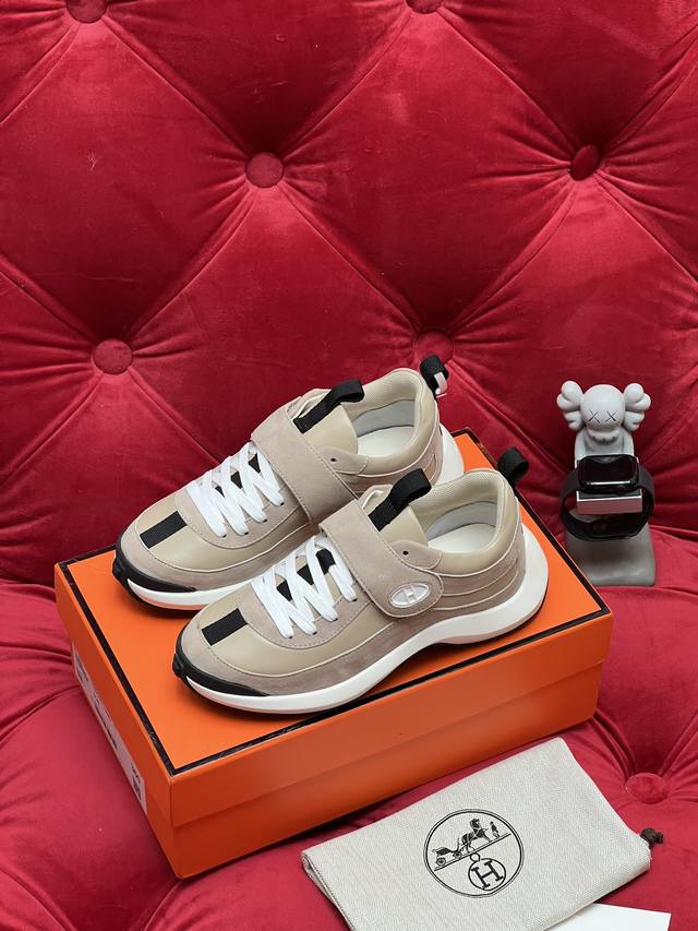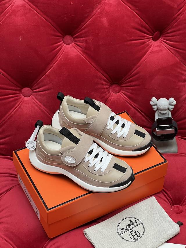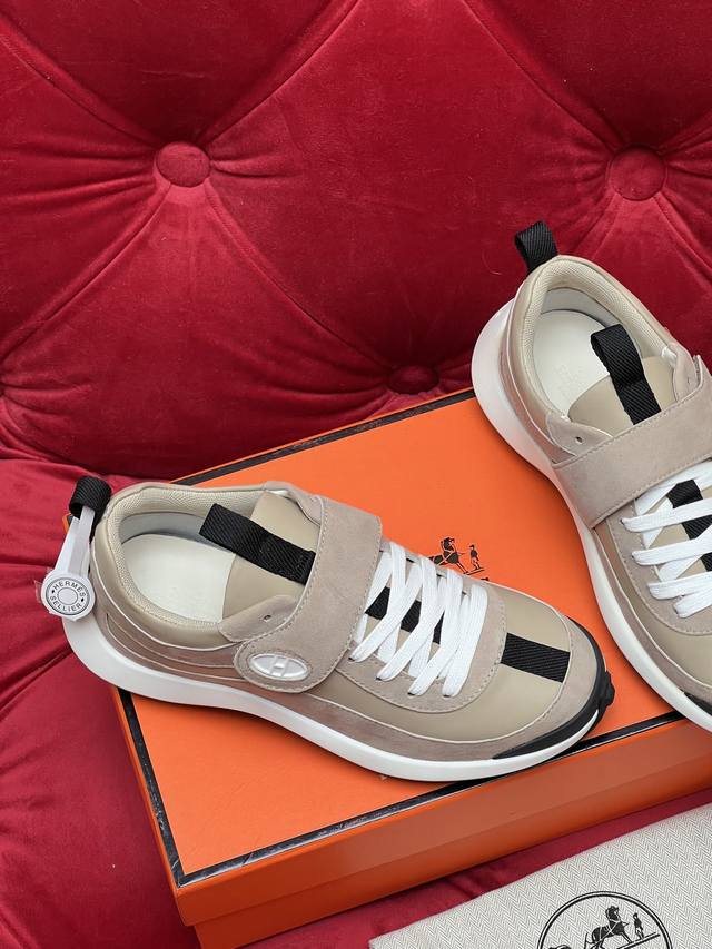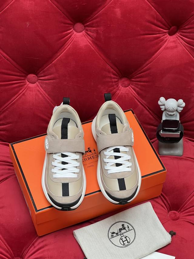 / 独家实拍 顶级版本 Hermes 爱马仕26Ss秋冬魔术贴厚底休闲运动鞋 休闲之履运动老爹鞋结合与麂皮山羊皮 鞋面饰以标志性“H”字母 鲜艳色彩展现活力 延续品