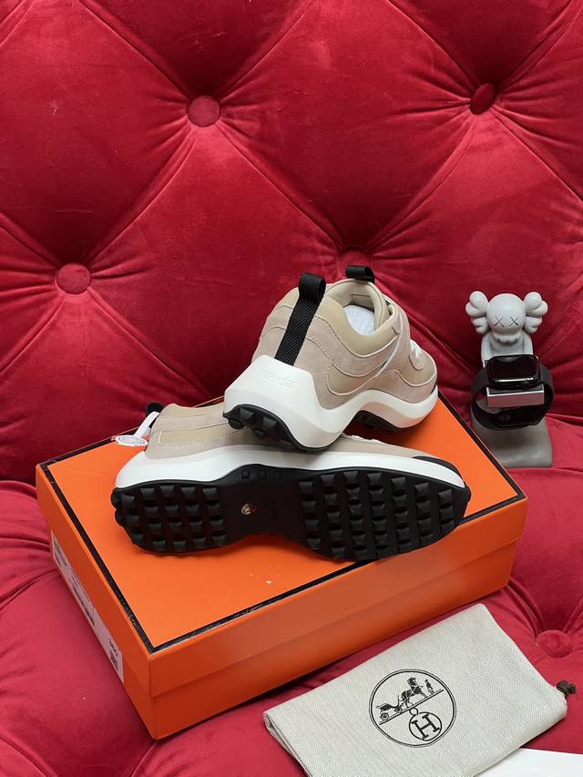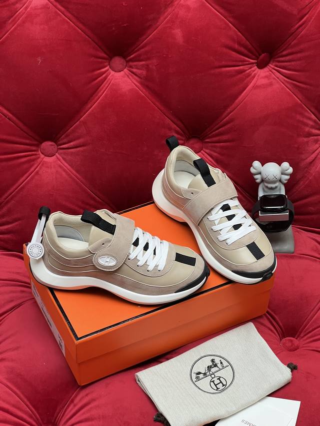 独家实拍 顶级版本 Hermes 爱马仕26Ss秋冬魔术贴厚底休闲运动鞋 休闲之履运动老爹鞋结合与麂皮山羊皮 鞋面饰以标志性“H”字母 鲜艳色彩展现活力 延续品