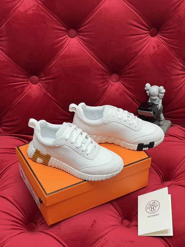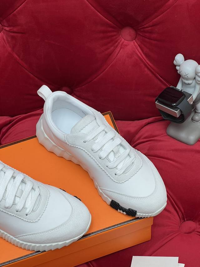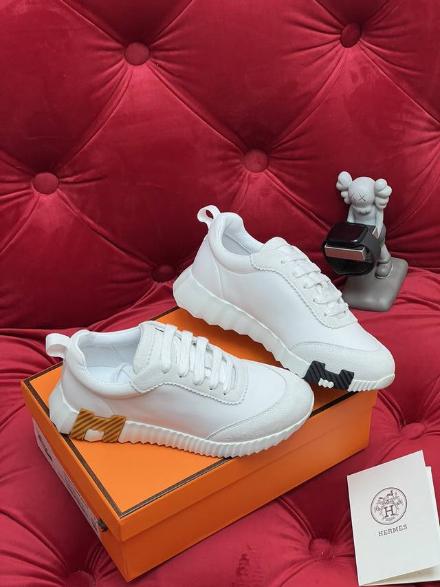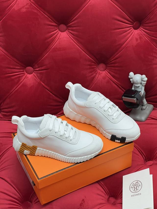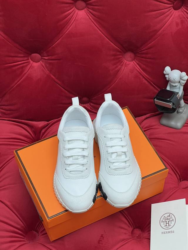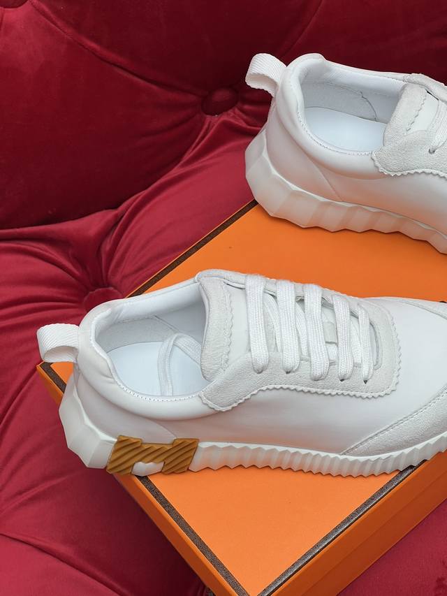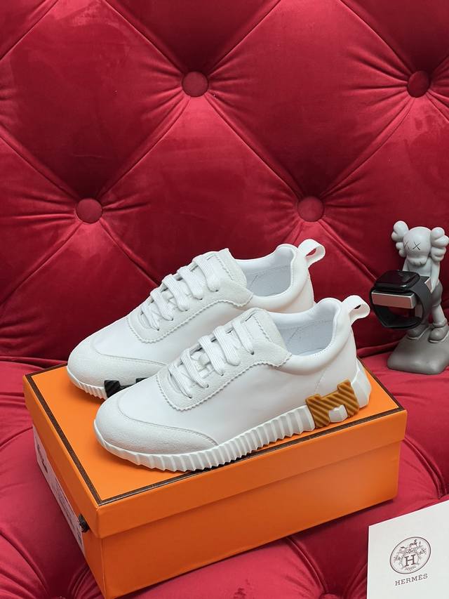 独家实拍 顶级版本 Hermes 24Ss Fe New Arrival~秋冬新款 Bouncing 情侣运动鞋 爱马仕最舒服的鞋没有之一 上脚特轻又巨好看 逛街暴走都不会累 整体麂皮手感很好 很漂亮了也很百搭衣服 很轻便舒适 轻盈无比 运动休闲两不误 踩感超棒 30+男女款色搭配 任你挑任你选总有你想要的 DDD 面料:进口高丝光羊猄 原单雨绒布 DDD 内里:进口内里鞋垫专用丝绸羊皮 DDD 大底:采用Ip+Tpu 多色字母 德国技术照射机无缝组合 DDD Size:女35-41男38-46 DDD