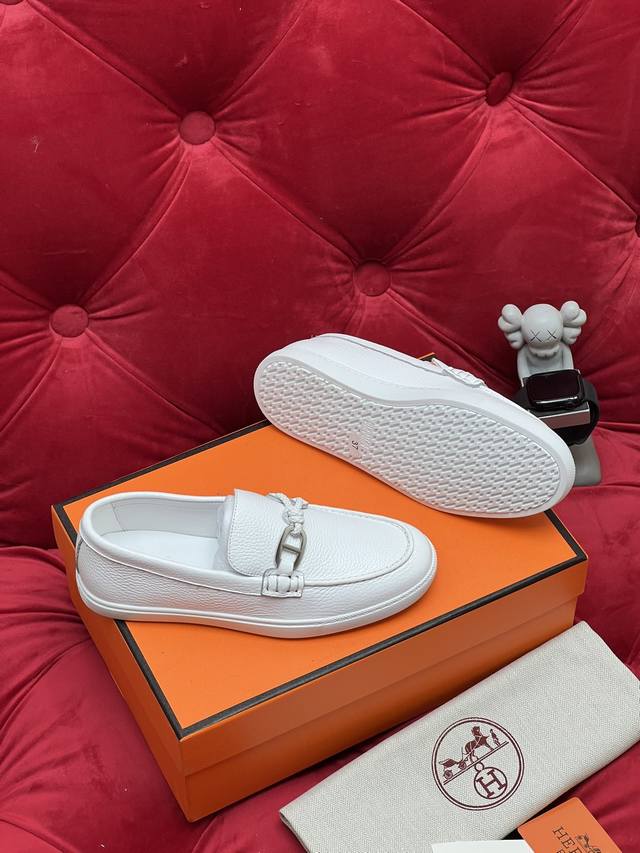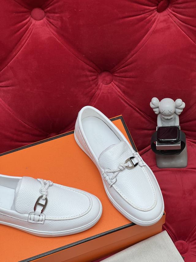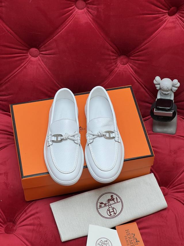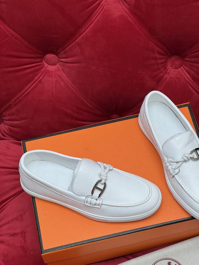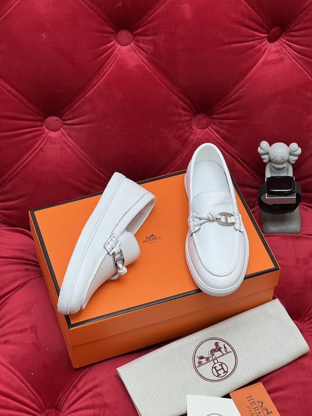 独家实拍 高版本 男款10 Hermes# Lgnacio系列 情侣款 乐福鞋 休闲 运动鞋 原版购入开发 DDD 做货 这款小牛皮乐福鞋饰有皮革编绳和“Chaine D‘Ancre”鞋扣 时尚航海风格乐福鞋 是陆地和海滨的理想选择 配送专柜精美包装 DDD 面料 : 原版定制进口头层牛皮 牛反绒 DDD 内里 : 进口柔软羊皮里 DDD 鞋底 : 原版开模防滑Tpu材质 DDD 底厚 :2Cm DDD Size:35-45 女40男45定做不退换 DDD