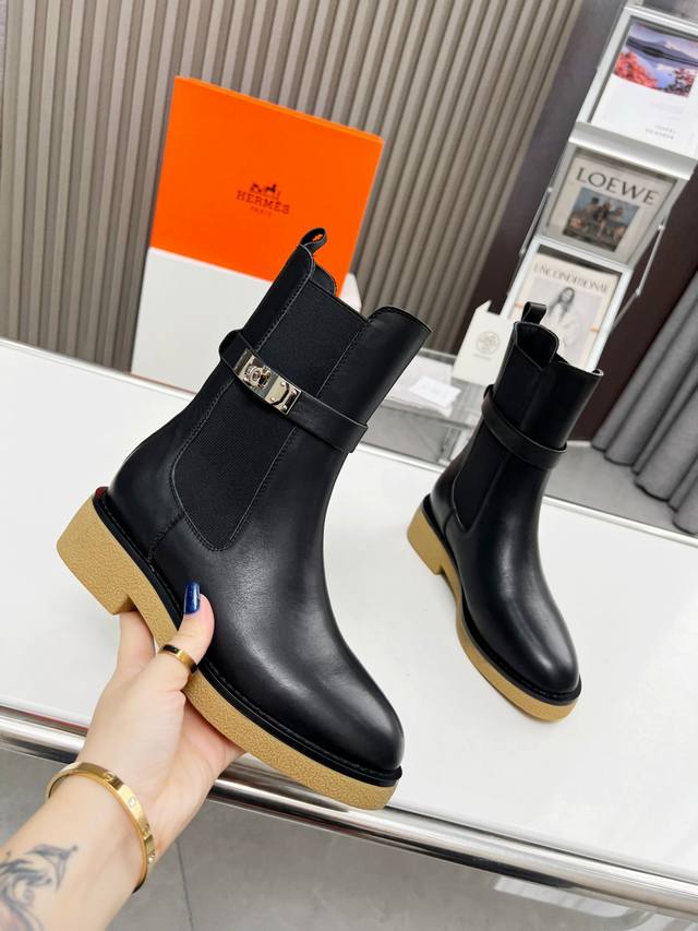现货发售 Hermes. 经典升级版面料头层牛皮,内里:牛里。超级经典的爱马仕Kelly扣骑士靴.穿上你就是女王.法抗拒的楦头.经典中的经典.爱马仕的Kelly